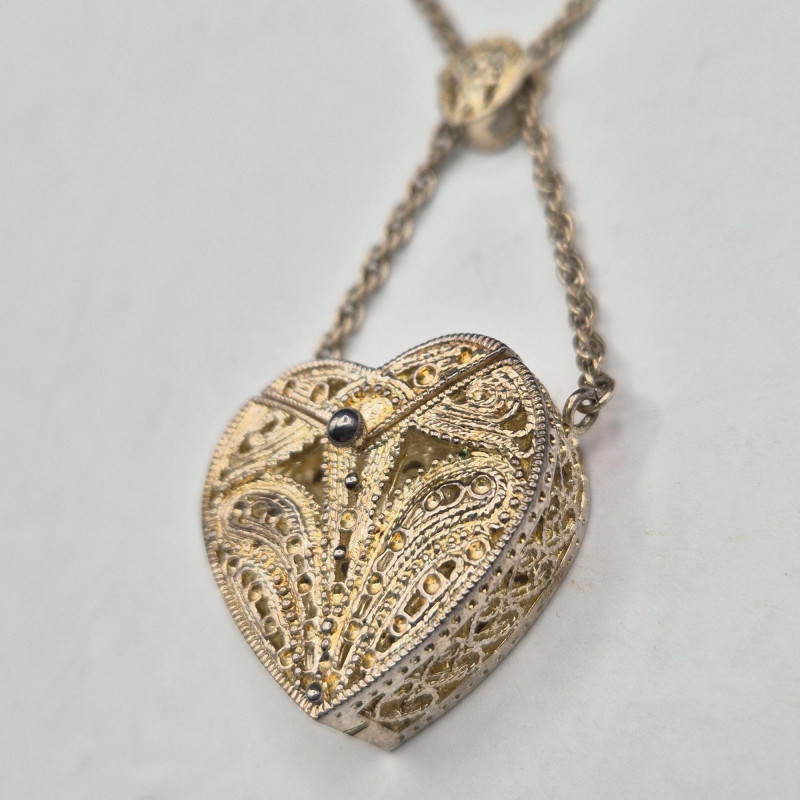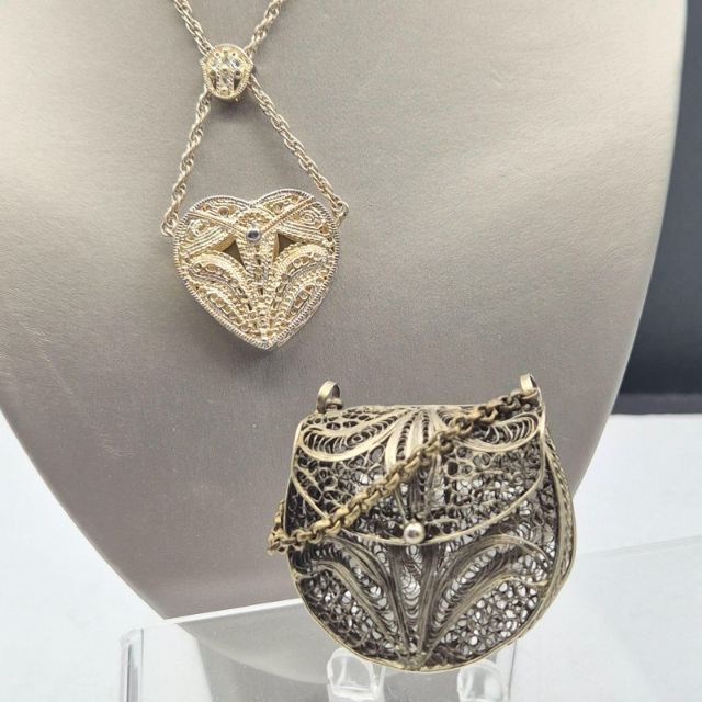 Lot # 66 - Two Ornate Boxes: W. Lind Heart Necklace & Filigree Coin Purse