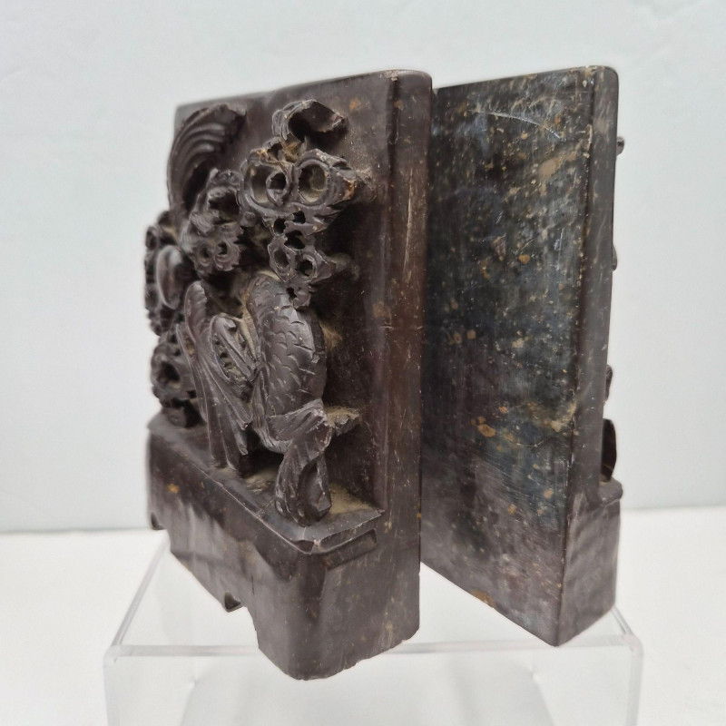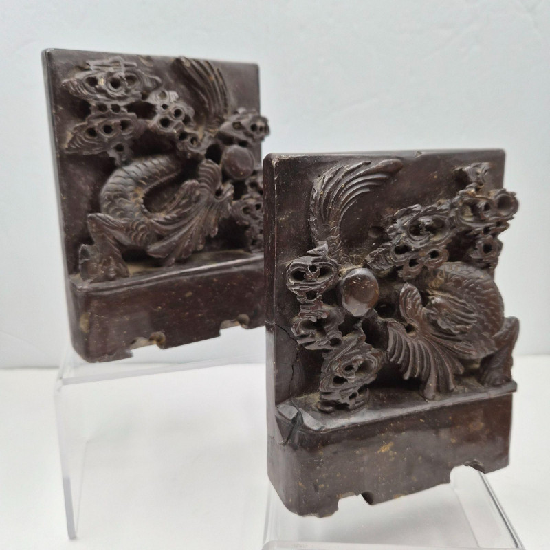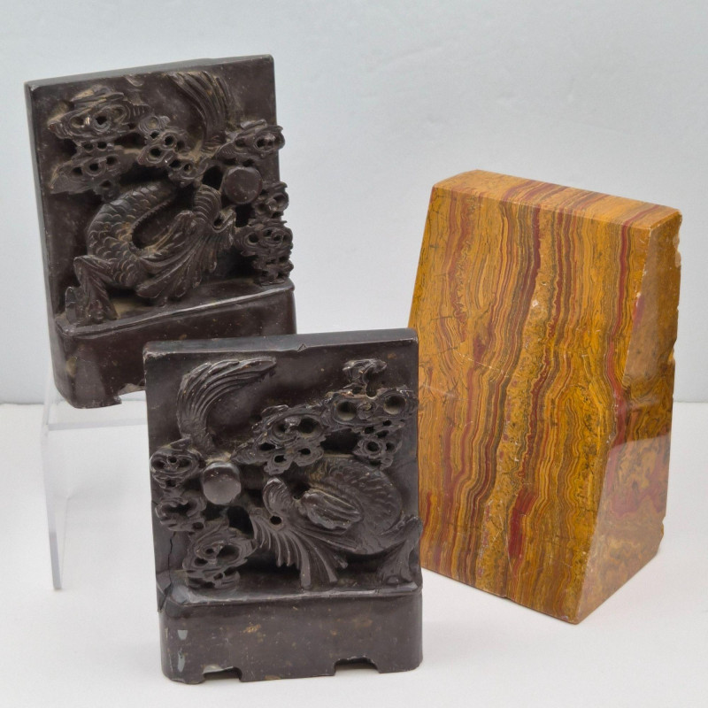 Lot # 67 - Charming Carved Stone Bookends: Banded & Dragon Motifs