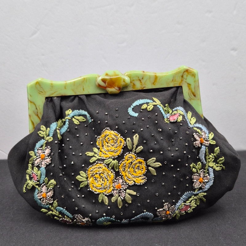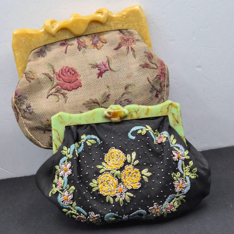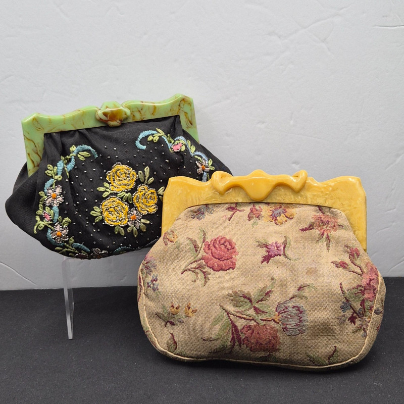 Lot # 70 - 1940s Bakelite Decorative Floral Clutch Purses