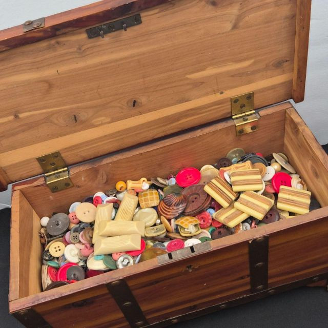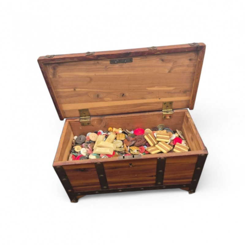 Lot # 72 - Cedar Treasure Trunk Filled with Vintage Buttons