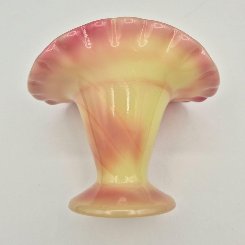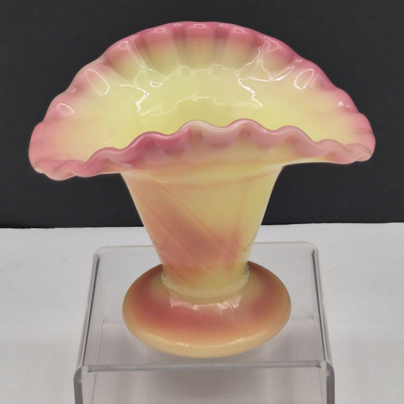 Lot # 75 - Fenton Uranium Glow Bud Vase - Custard & Pink