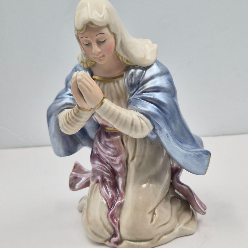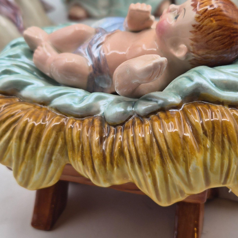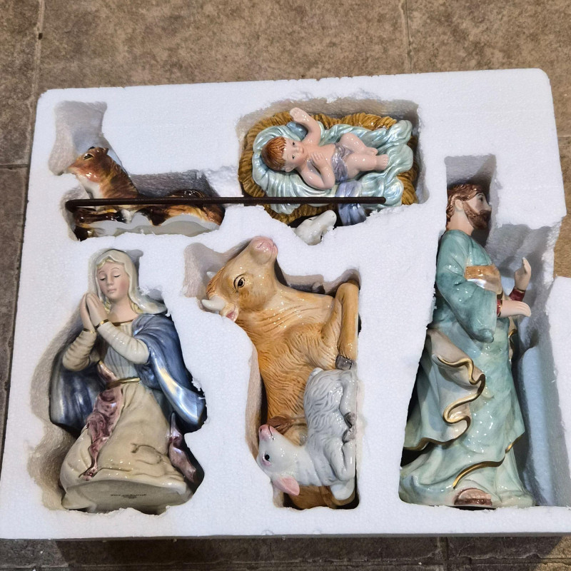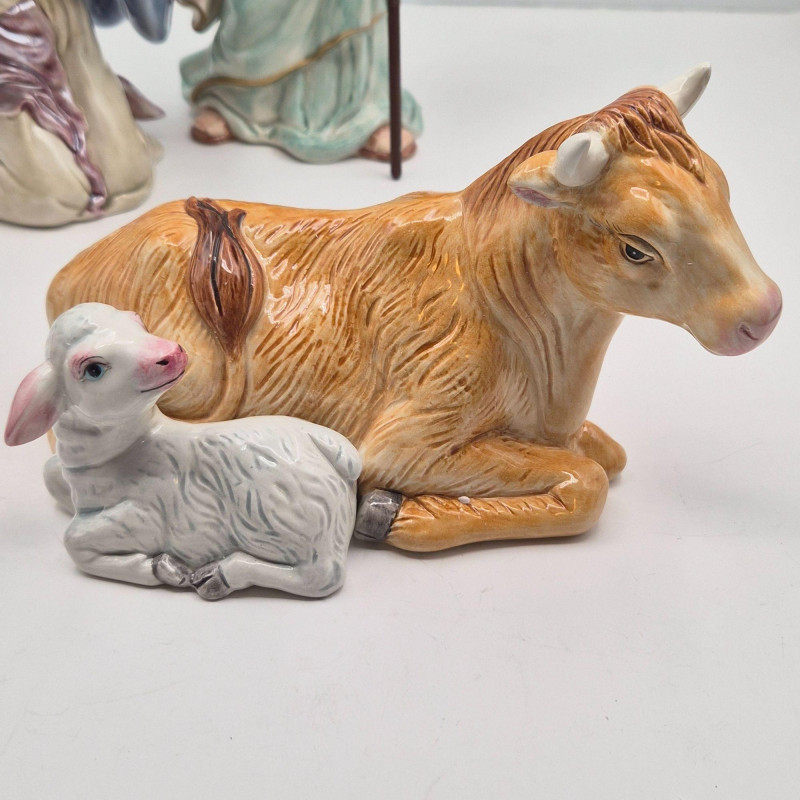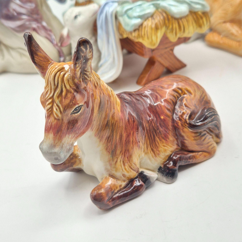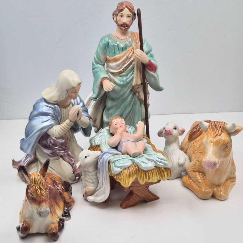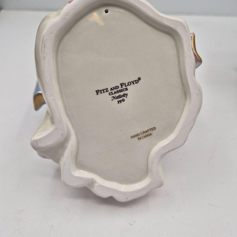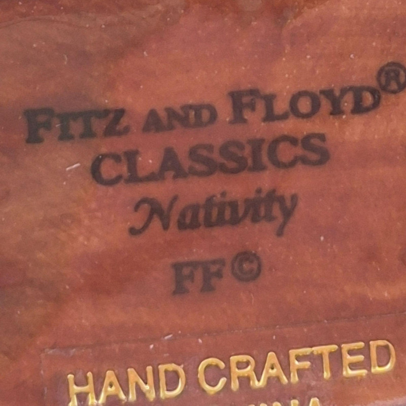 This Fitz & Floyd Classics nativity set includes all five original pieces, each crafted in glazed ceramic with the brand’s signature expressive detailing and warm, traditional palette. All figures are stamped Fitz & Floyd Classics on the underside. Please note condition details: The set comes in its original box and still presents a charming, cohesive nativity scene—ideal for collectors, decorators, or anyone who appreciates Fitz & Floyd’s timeless holiday craftsmanship.