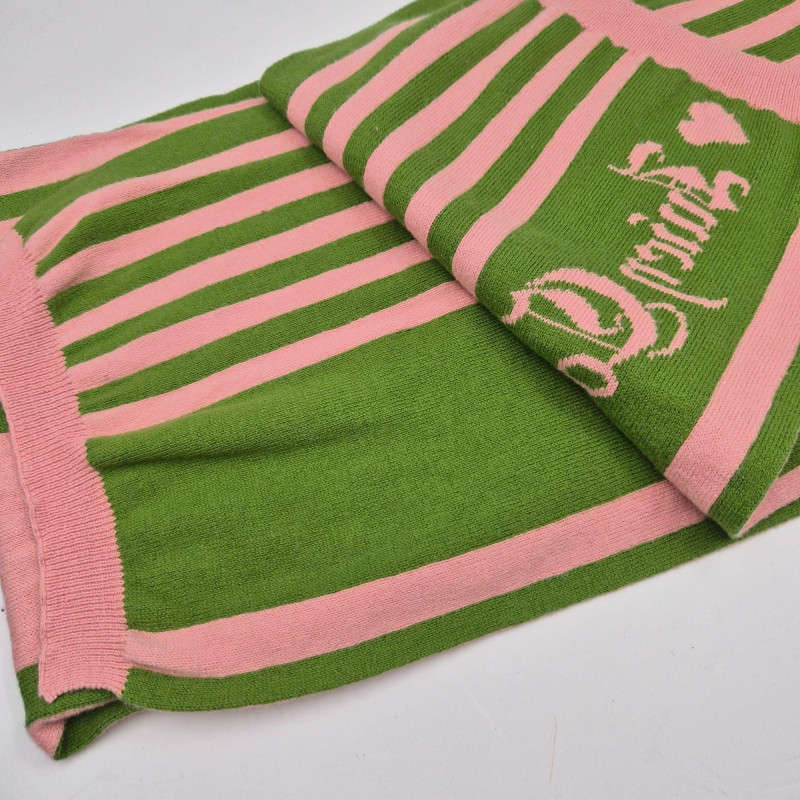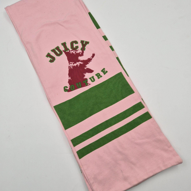 A bold and playful pairing of Juicy Couture scarves, each featuring the brand’s signature iconography in eye-catching pink and green stripes. These cotton-knit scarves bring a dash of Y2K nostalgia and designer flair to any winter wardrobe or fashion collection. Both pieces showcase the classic Juicy Couture logo, making them perfect for collectors, stylists, or anyone craving a pop of branded charm. Whether worn or displayed, this duo delivers color, comfort, and couture attitude.