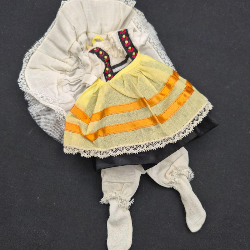 A colorful and varied assortment of vintage doll clothing, featuring pieces from beloved brands and handmade charm: Perfect for restoration, display, or creative repurposing—this lot offers nostalgic charm and plenty of variety.