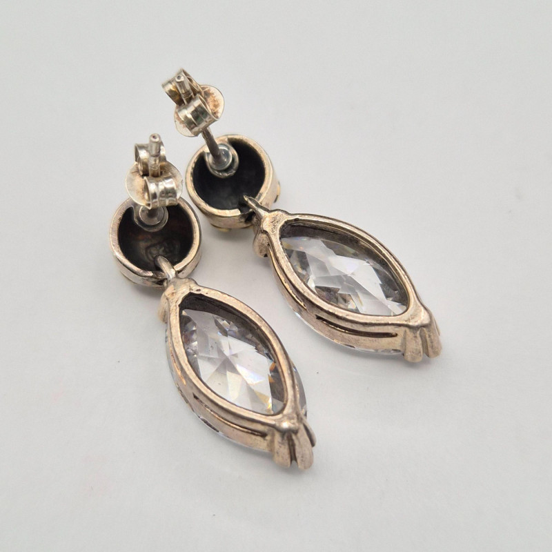 Lot # 86 - Runway Radiance: Sterling Silver Ice‑Stone Earrings & Pendant Set