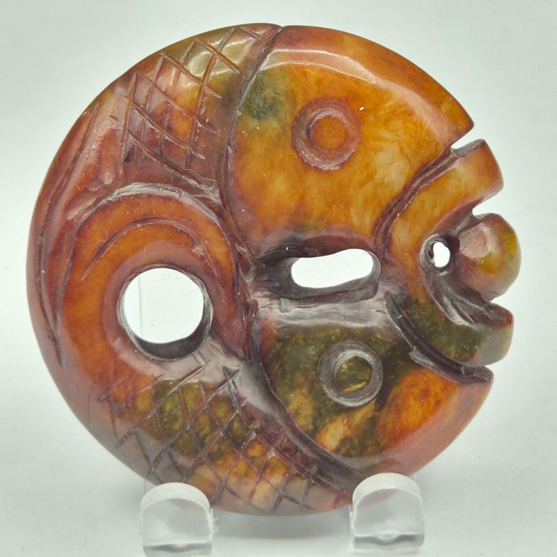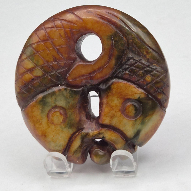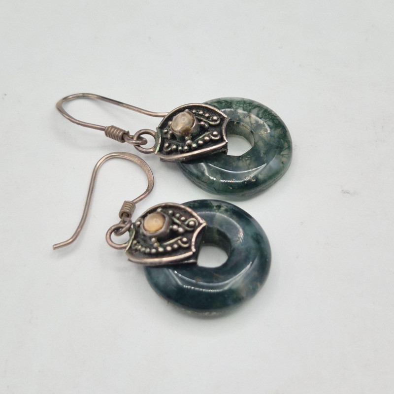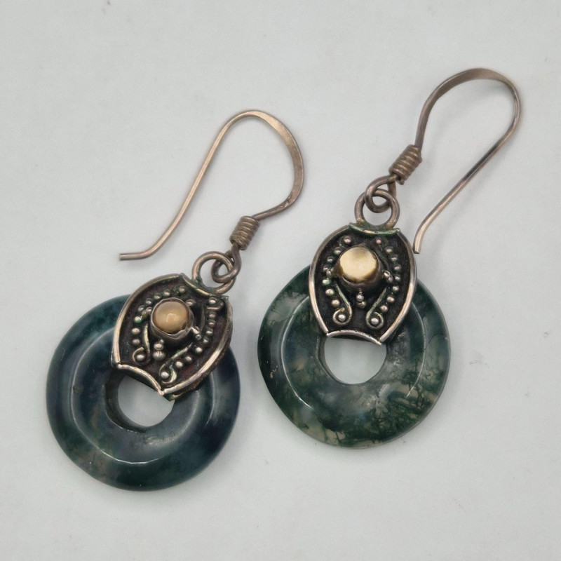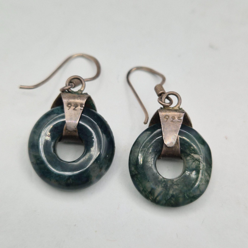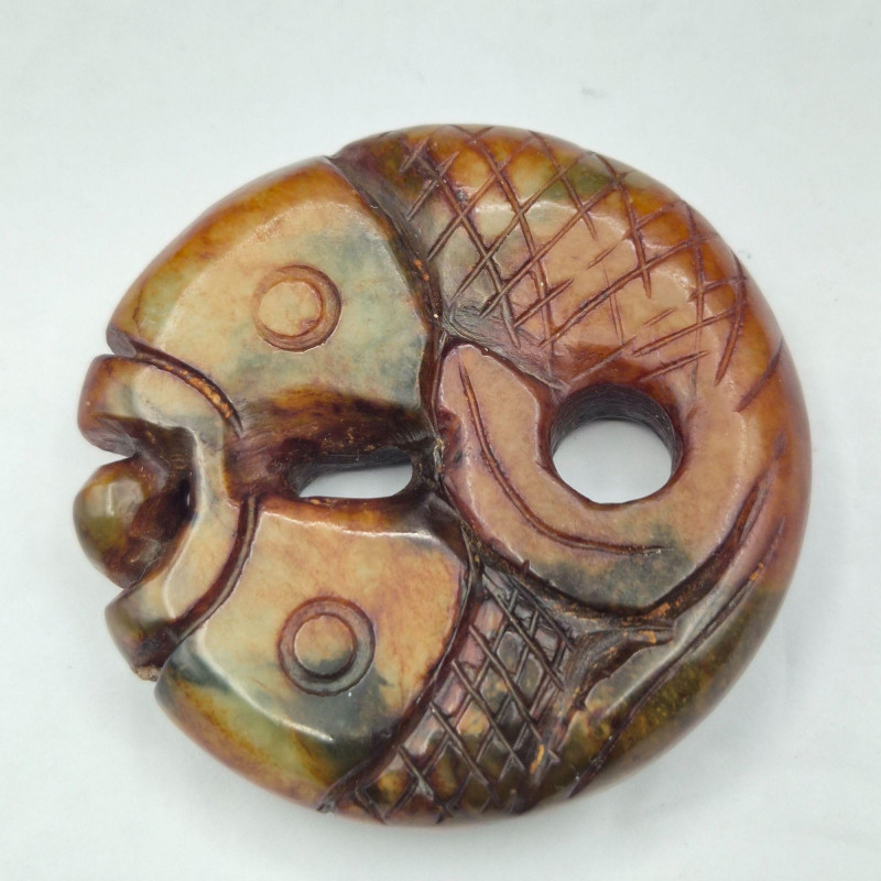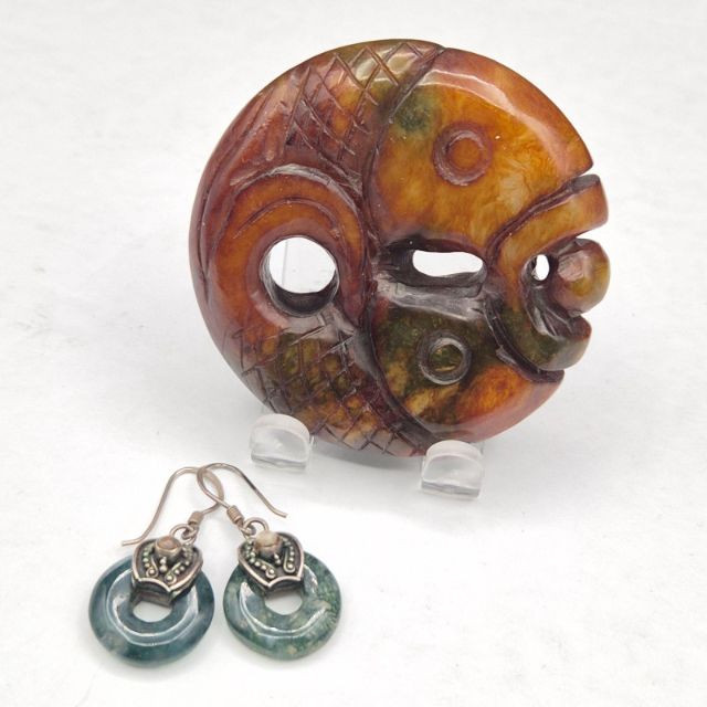 Lot # 87 - Brown Jade Double Fish Amulet & Moss Agate Earrings