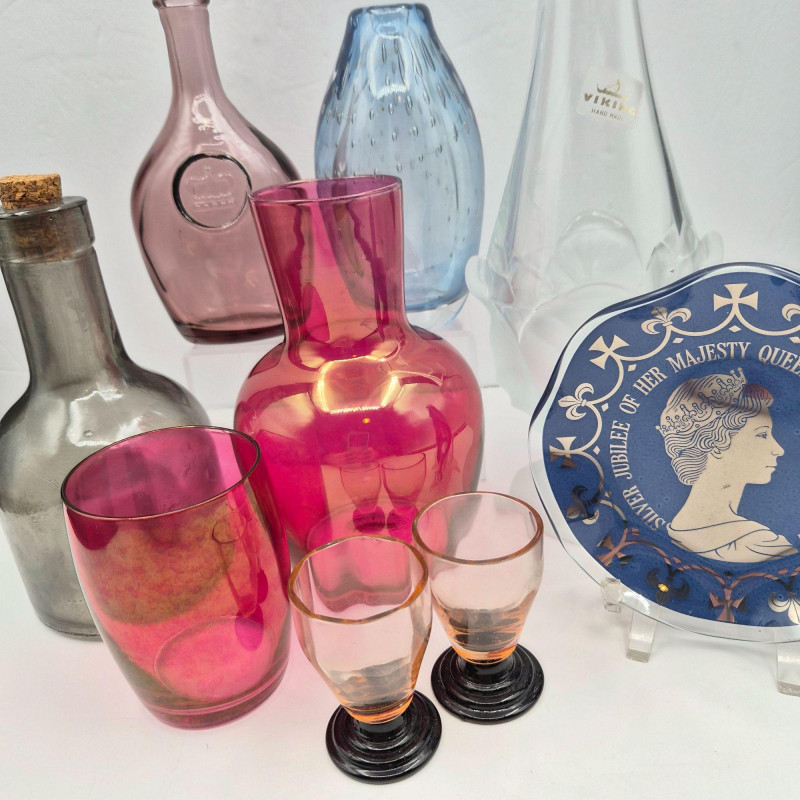 Lot # 102 - Glass Decor Mix - Viking Glass, Queen Elizabeth, Wheaton Bottle & More
