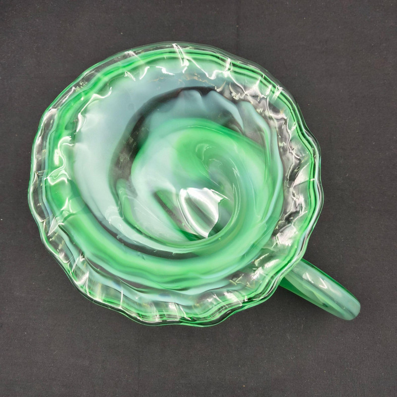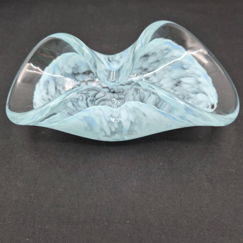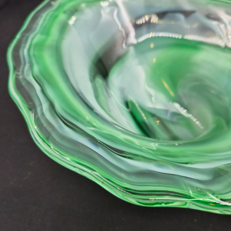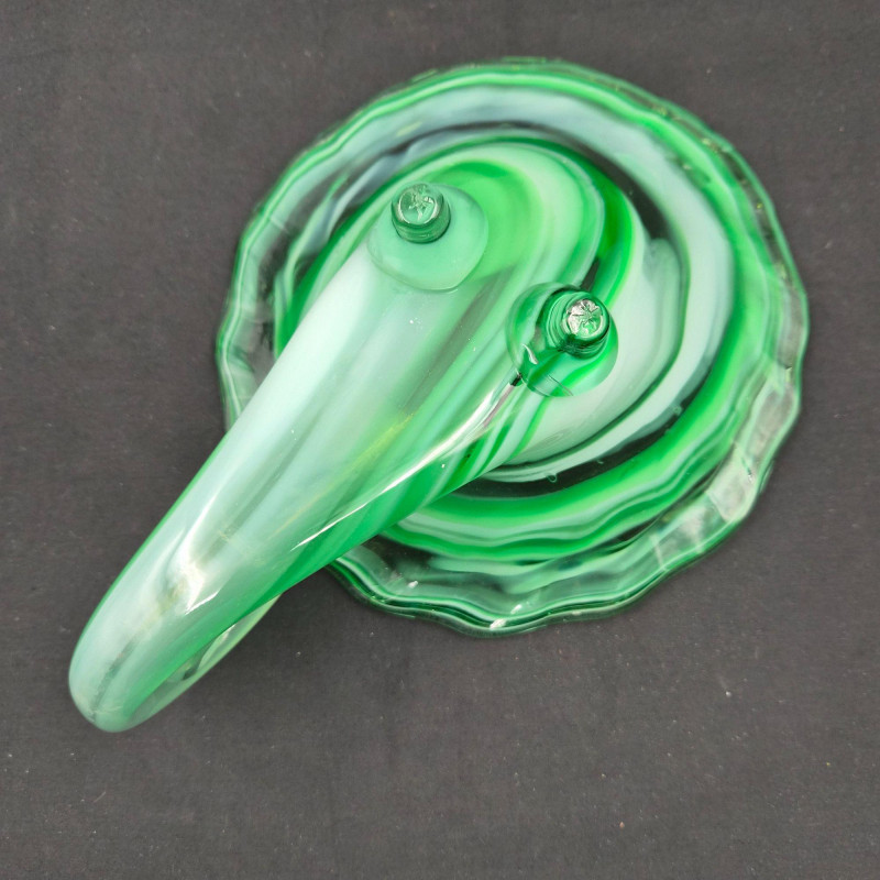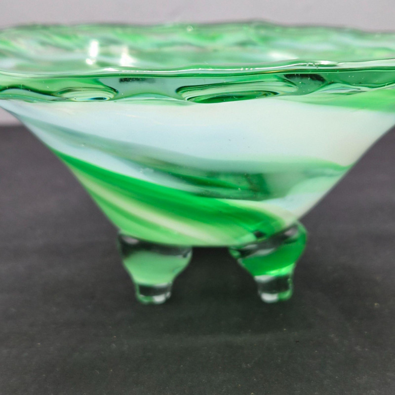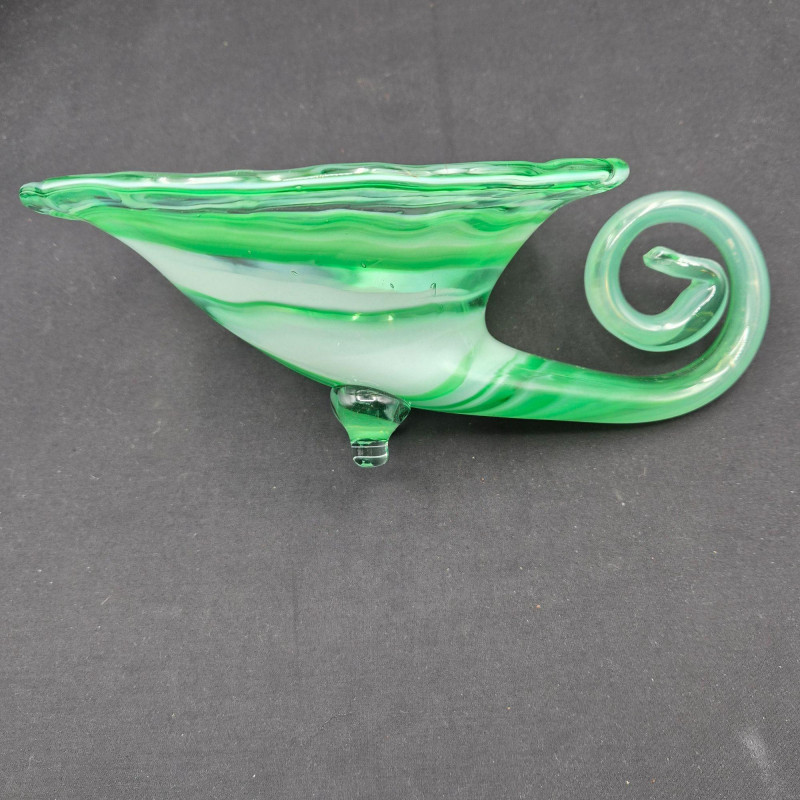 Lot # 105 - Art Glass Decor - Blue Curved Dish & Green Cornucopia