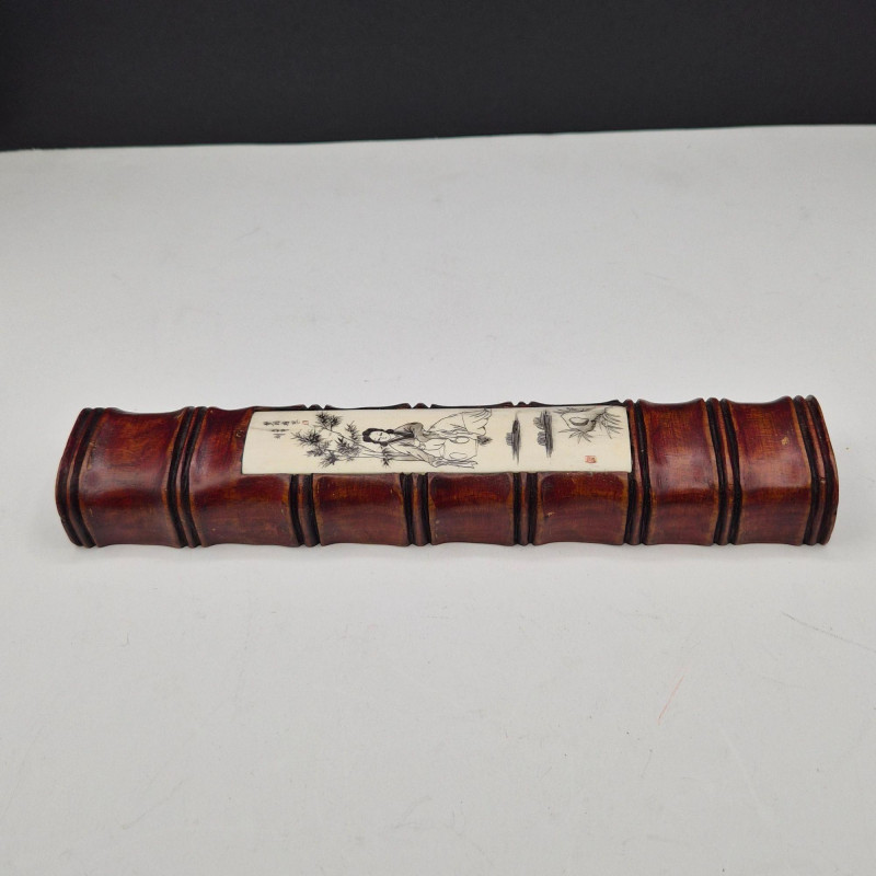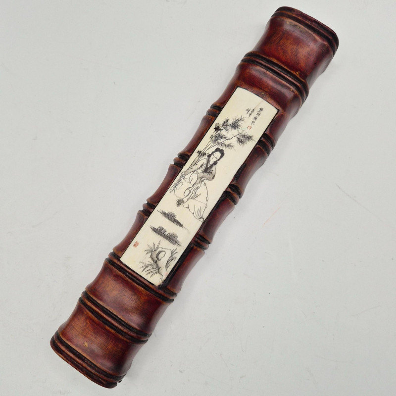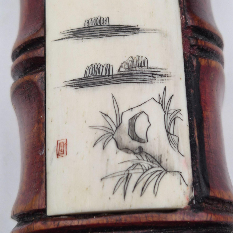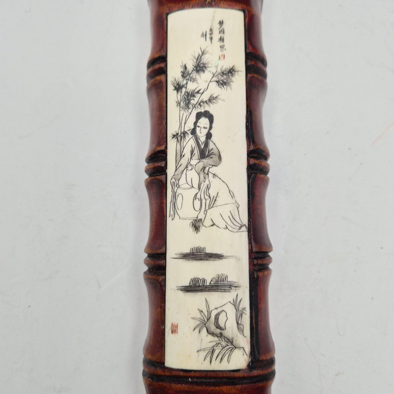 Eclectic grouping of scrimshaw and carved bone décor pieces, blending folk‑art charm with traditional Asian‑inspired craftsmanship. • Carved Wood & Scrimshaw Decor (10" x 2") – Bamboo‑look, cherry‑lacquered carved wood with an Asian motif scrimshaw panel. Warm tones and detailed linework make it a striking display accent. A fascinating mixed‑media lot ideal for collectors of scrimshaw, carved bone, folk art, or unique global décor.