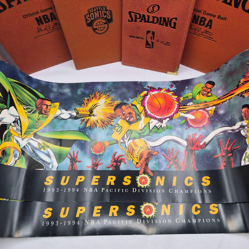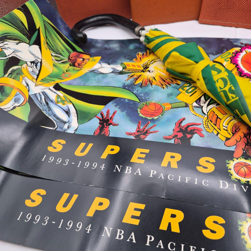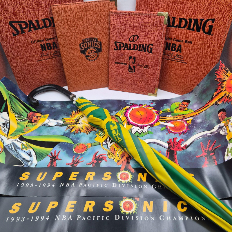 Lot # 116 - Seattle SuperSonics Fan Bundle: Posters, Umbrella & Notebooks