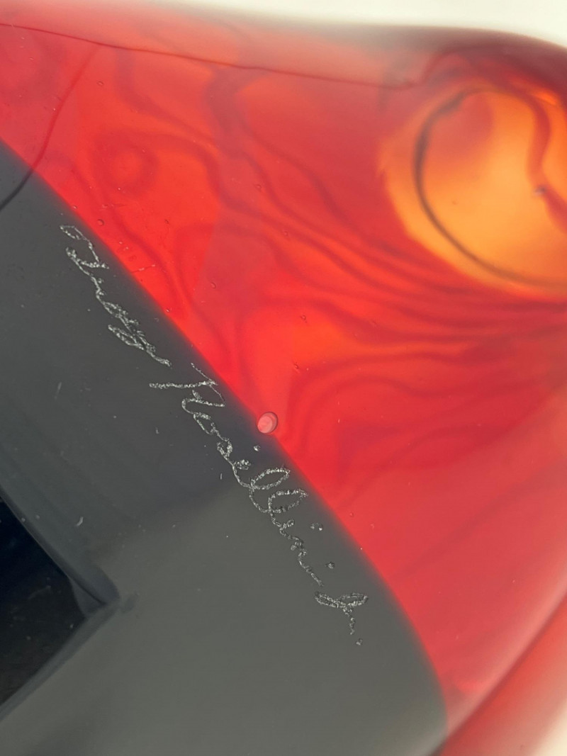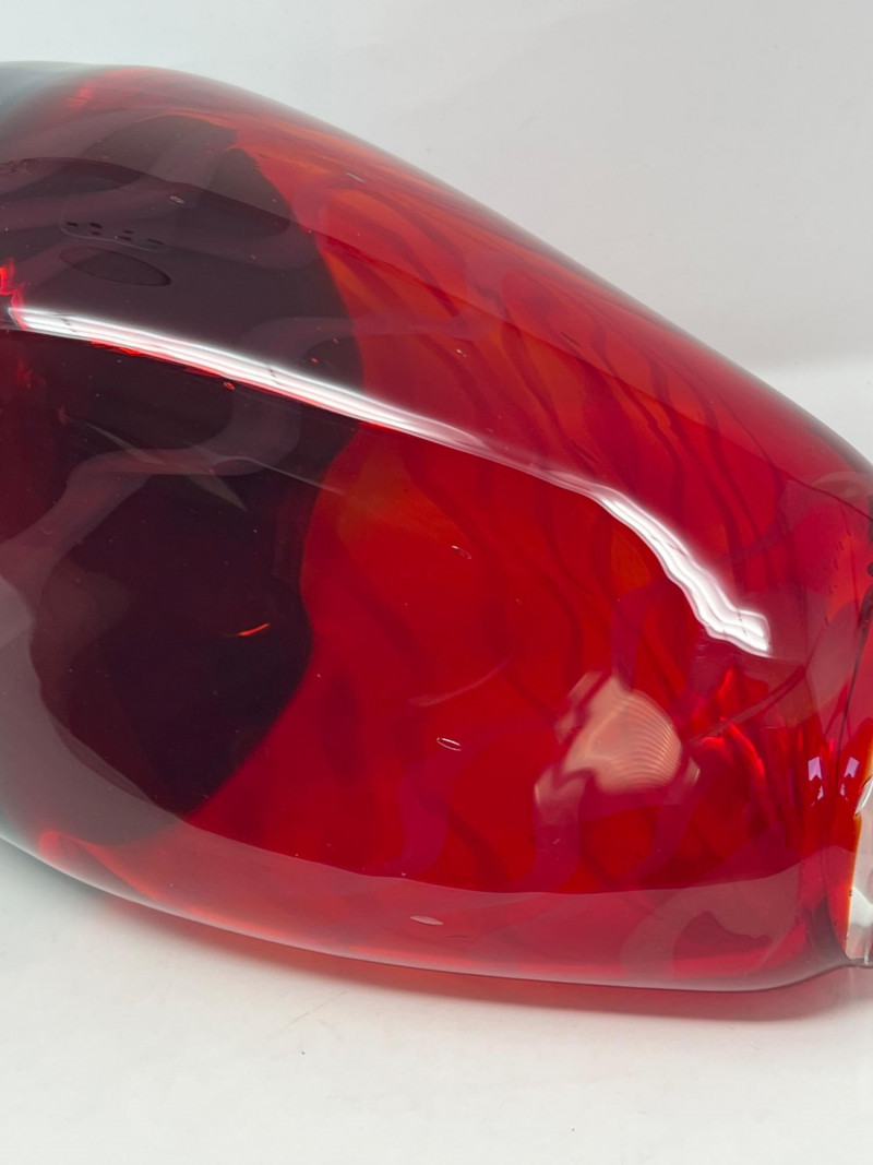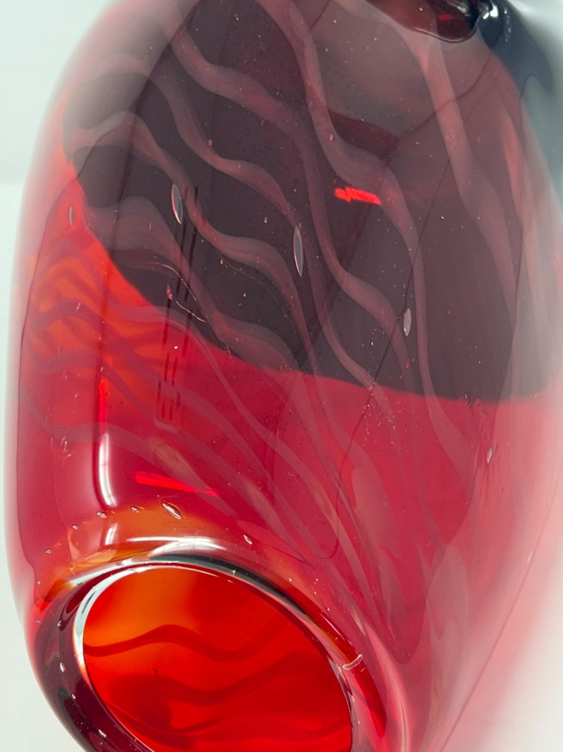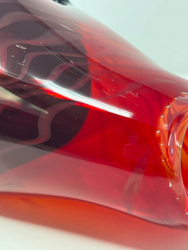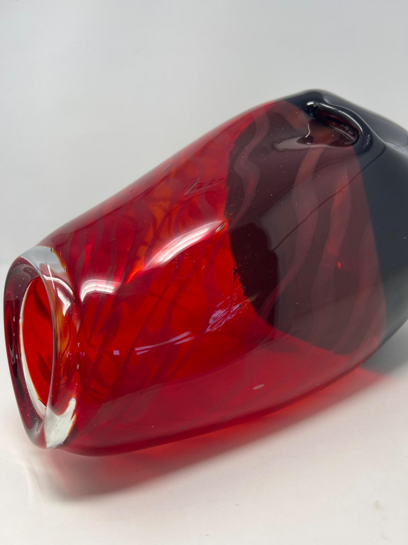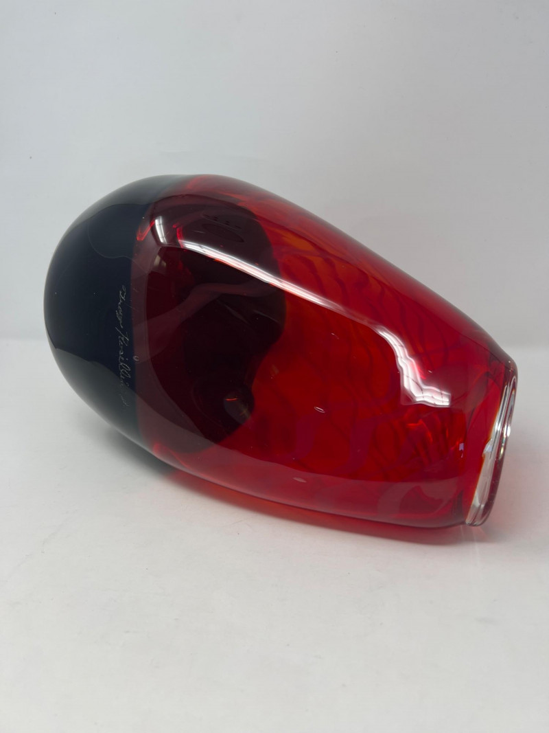 A vibrant, artisan‑crafted handblown glass piece signed by Northwest glass artist Troy Rosillini. This work showcases Rosillini’s signature use of rich color, organic form, and controlled movement within the glass. The piece reflects the studio‑art tradition of the Pacific Northwest, where Rosillini’s work is known for its craftsmanship and expressive color layering. A striking addition for collectors of contemporary studio glass, regional artists, or handblown decorative art.
