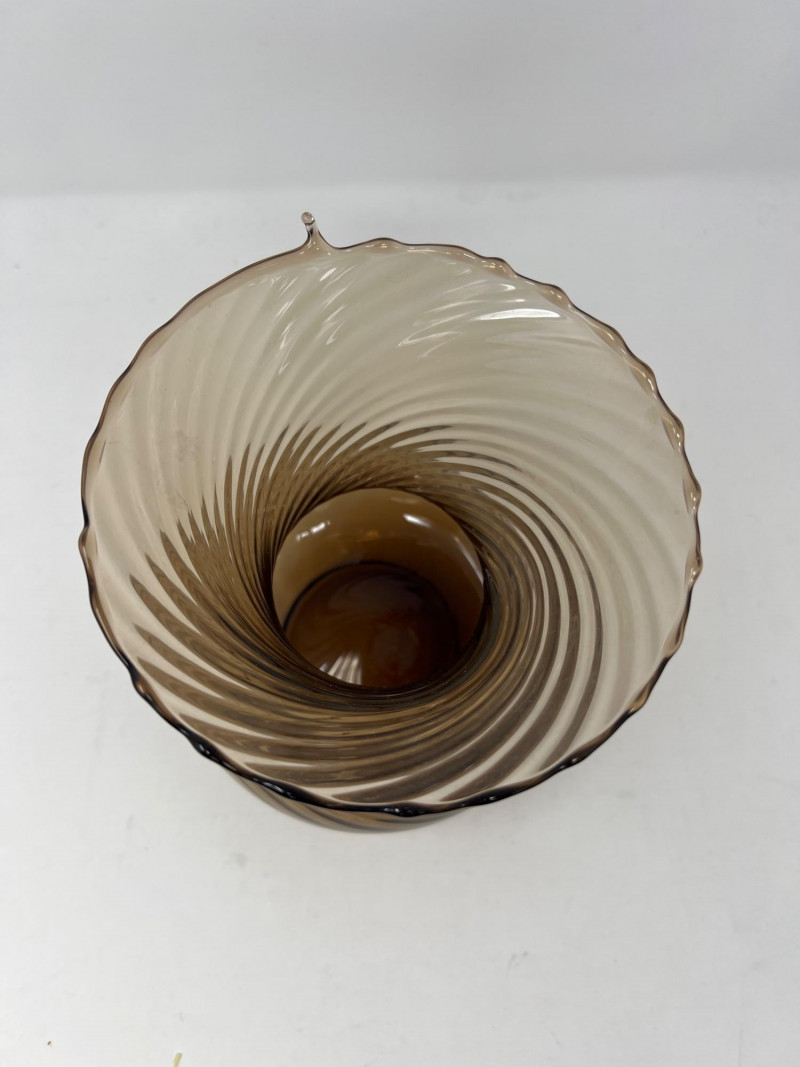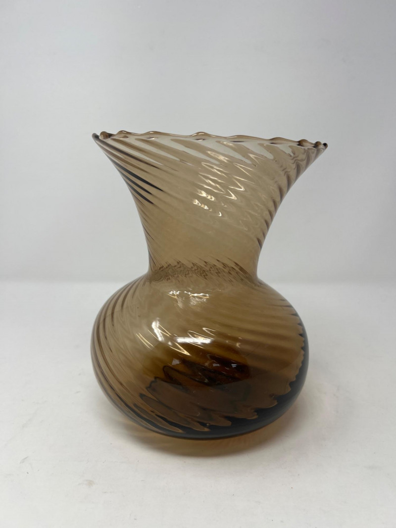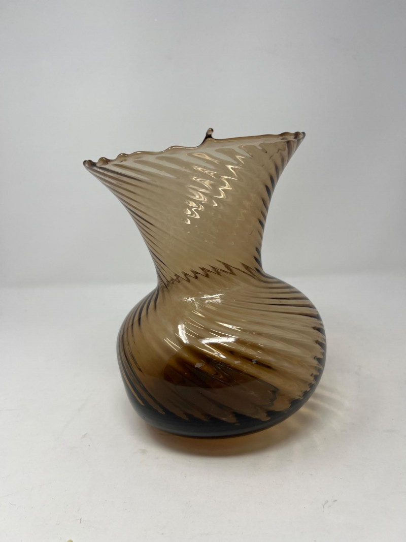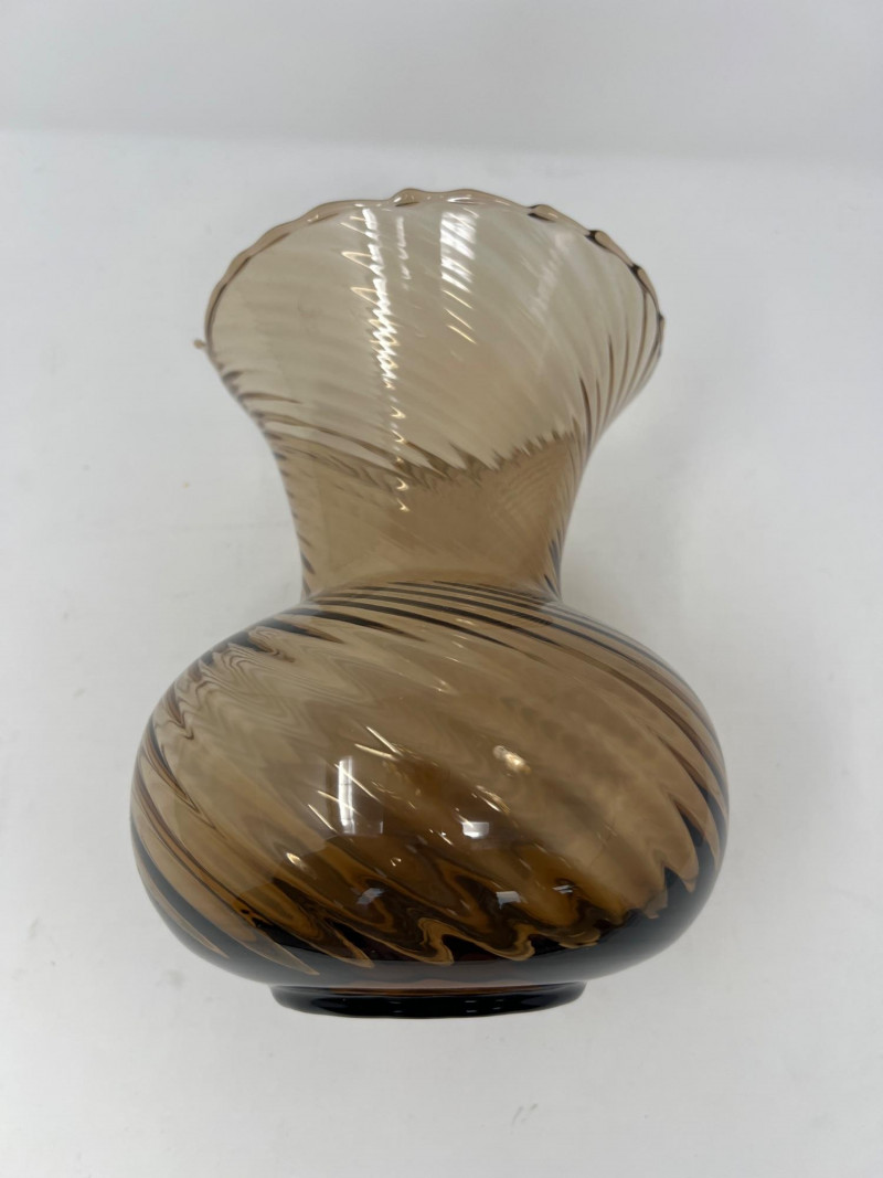 Lot # 32 - Handblown Swirl Art‑Glass Vase – Smoky Brown