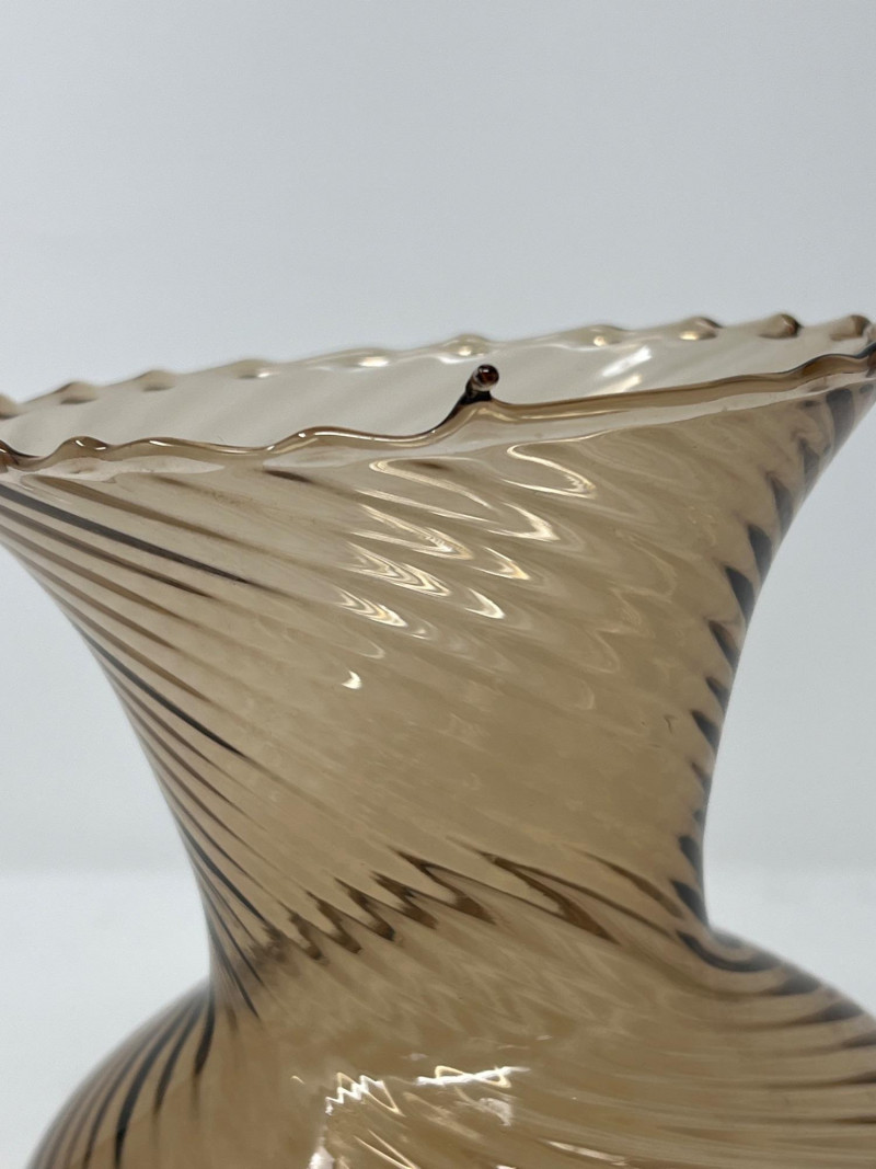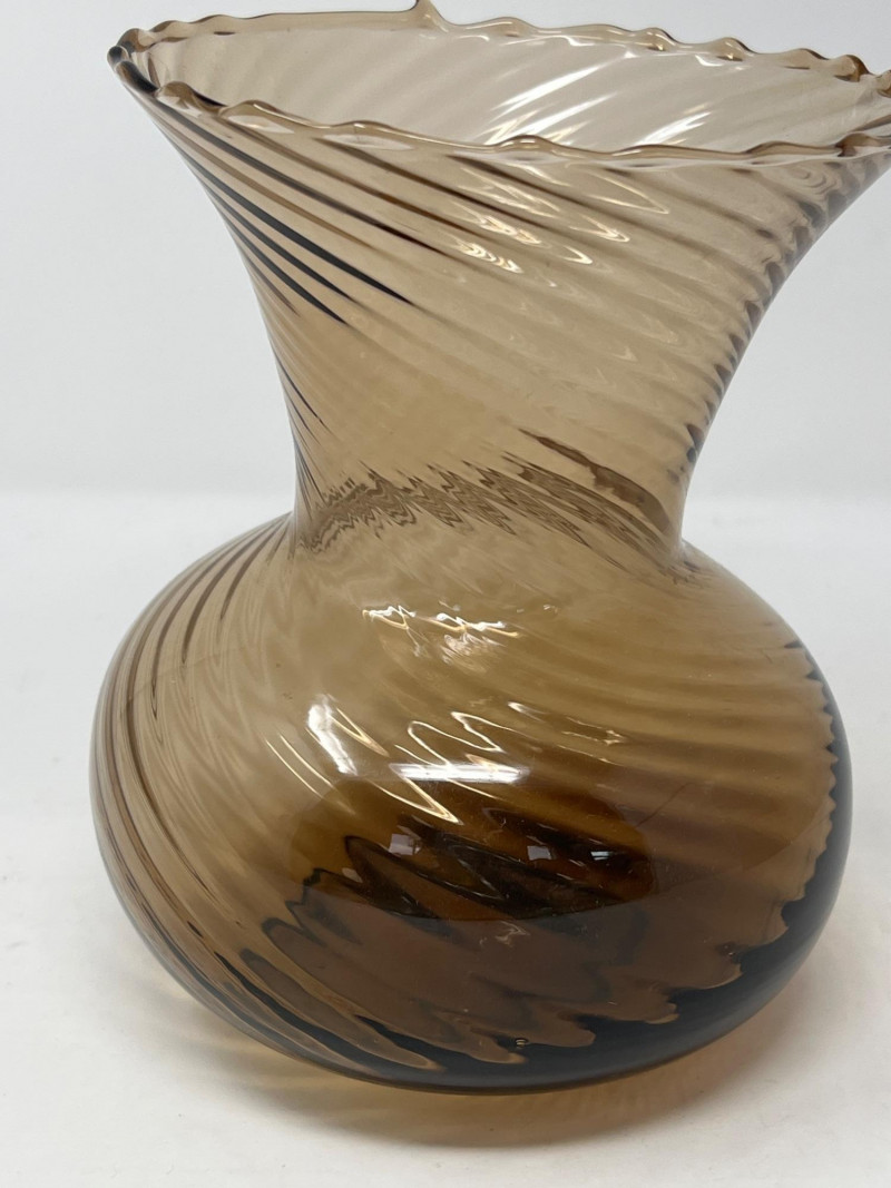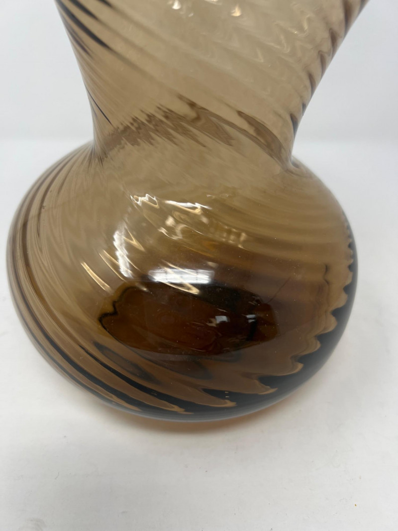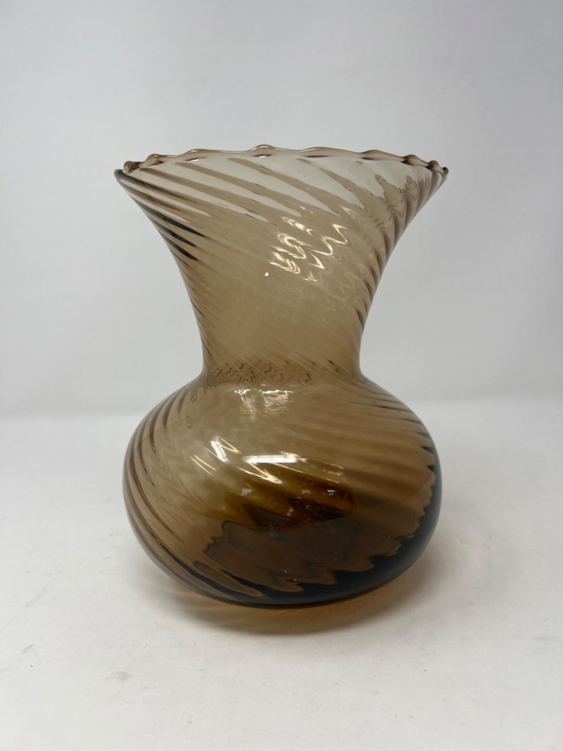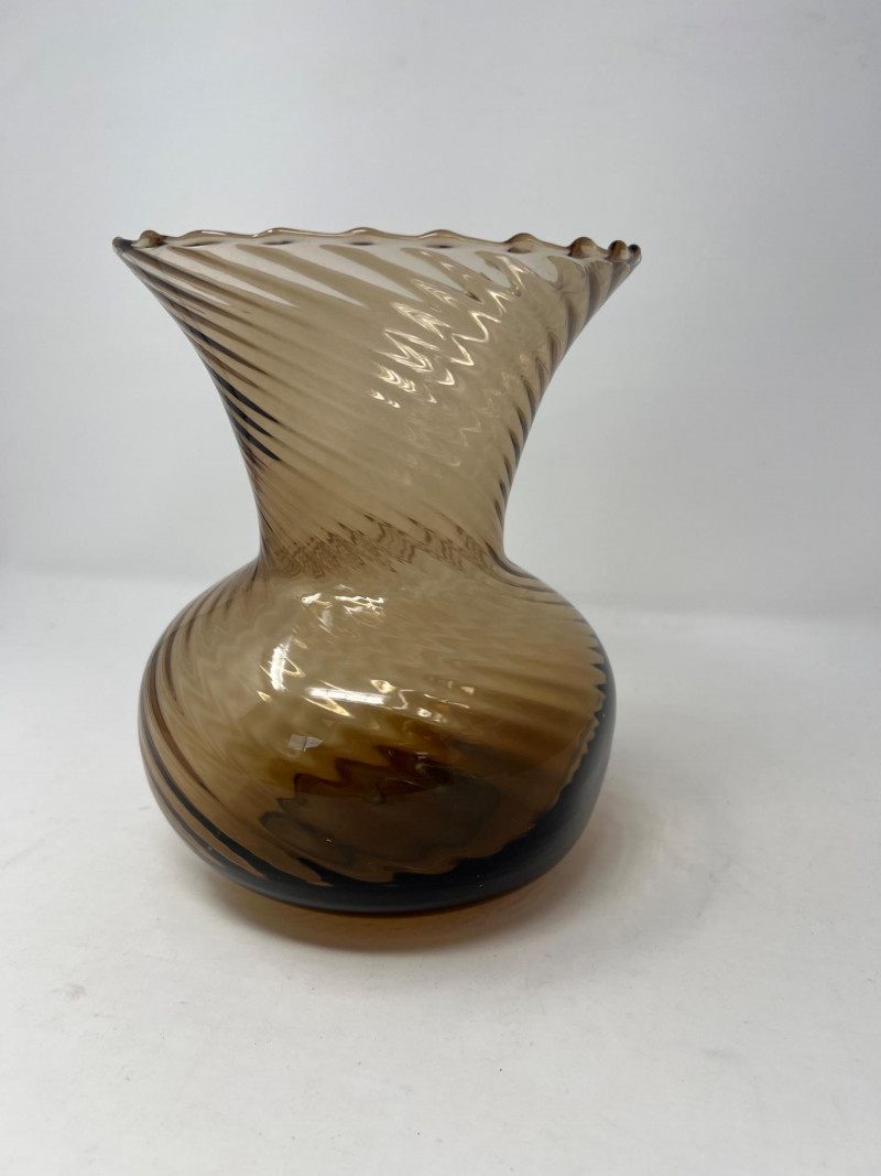 Lot # 32 - Handblown Swirl Art‑Glass Vase – Smoky Brown