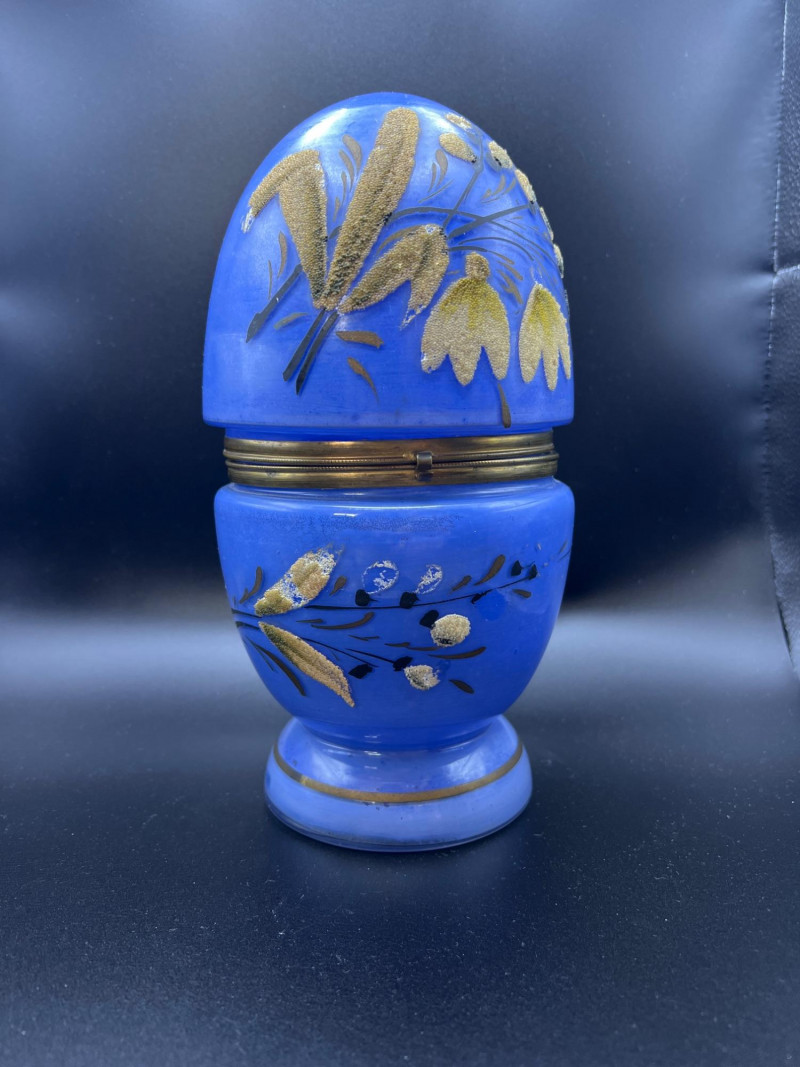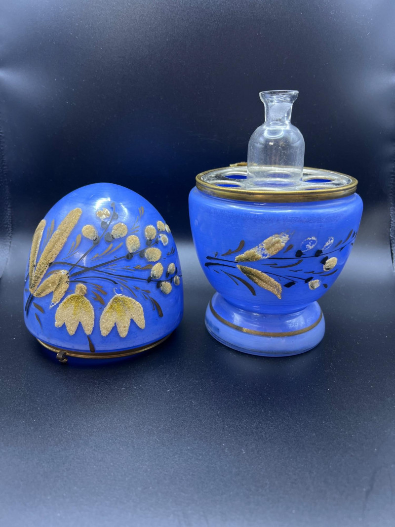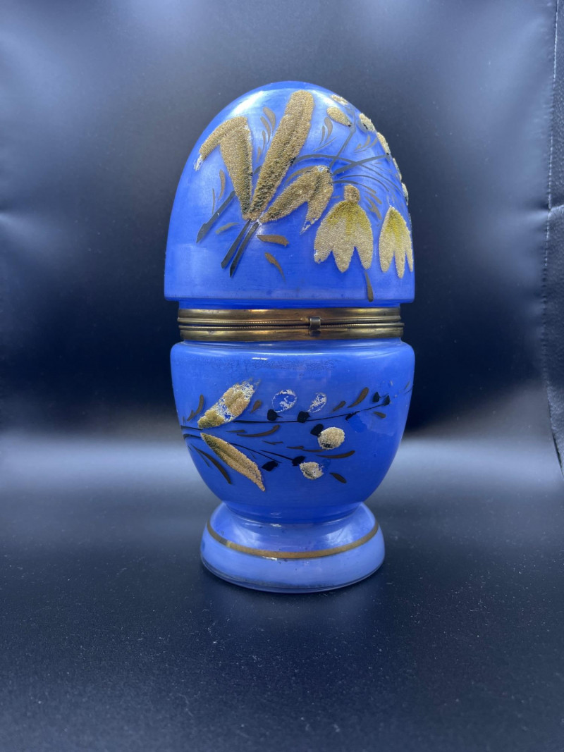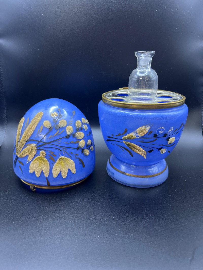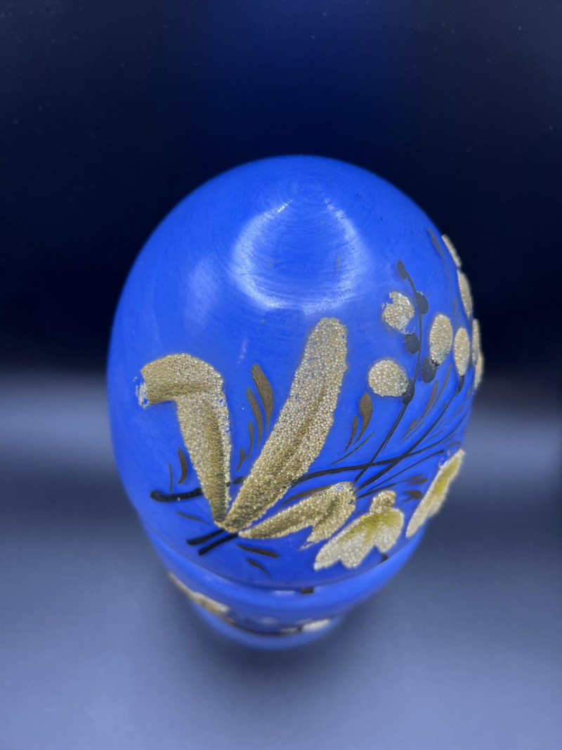 Lot # 36 - Mid Century Czechoslovakian Hand‑Decorated Cobalt Glass Liquor Egg