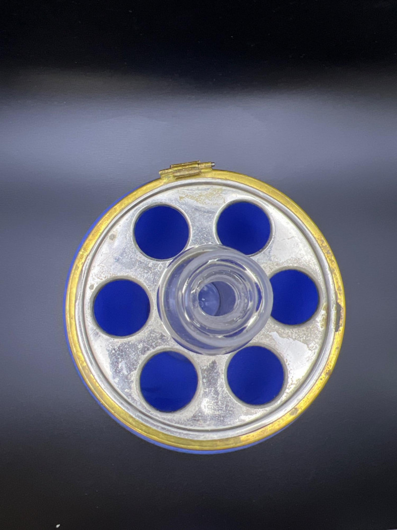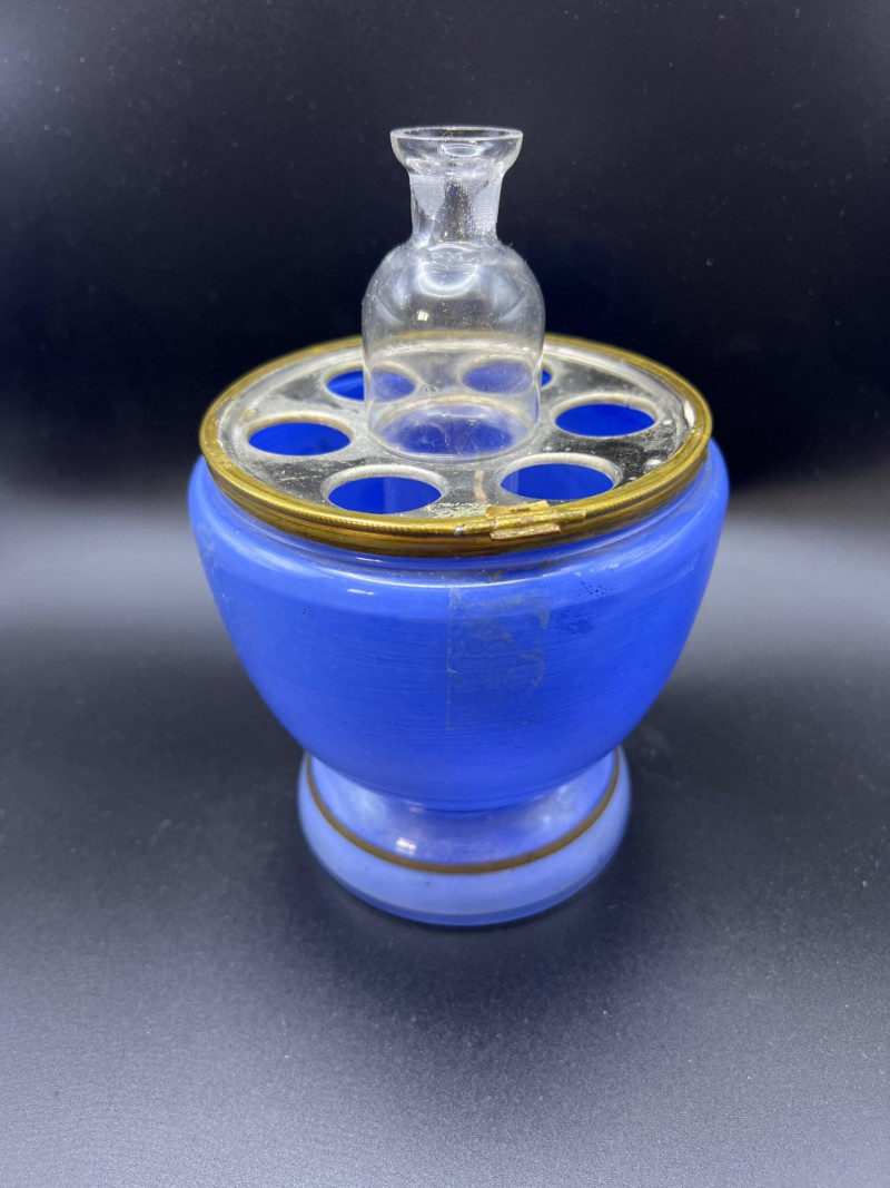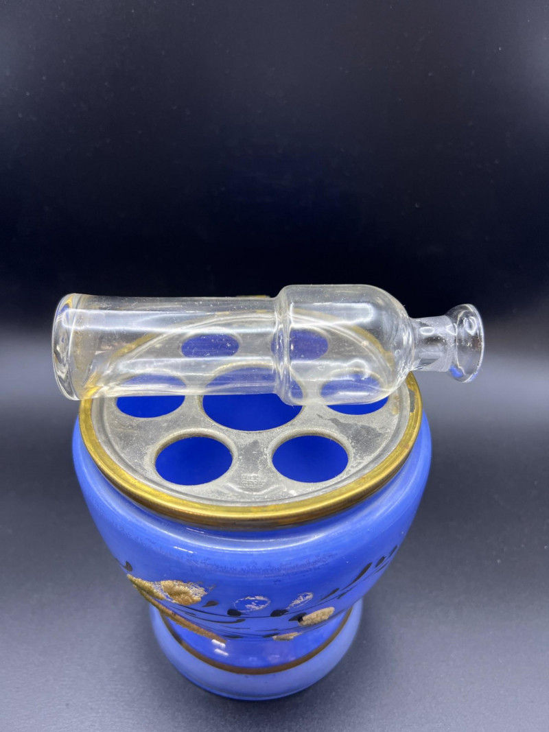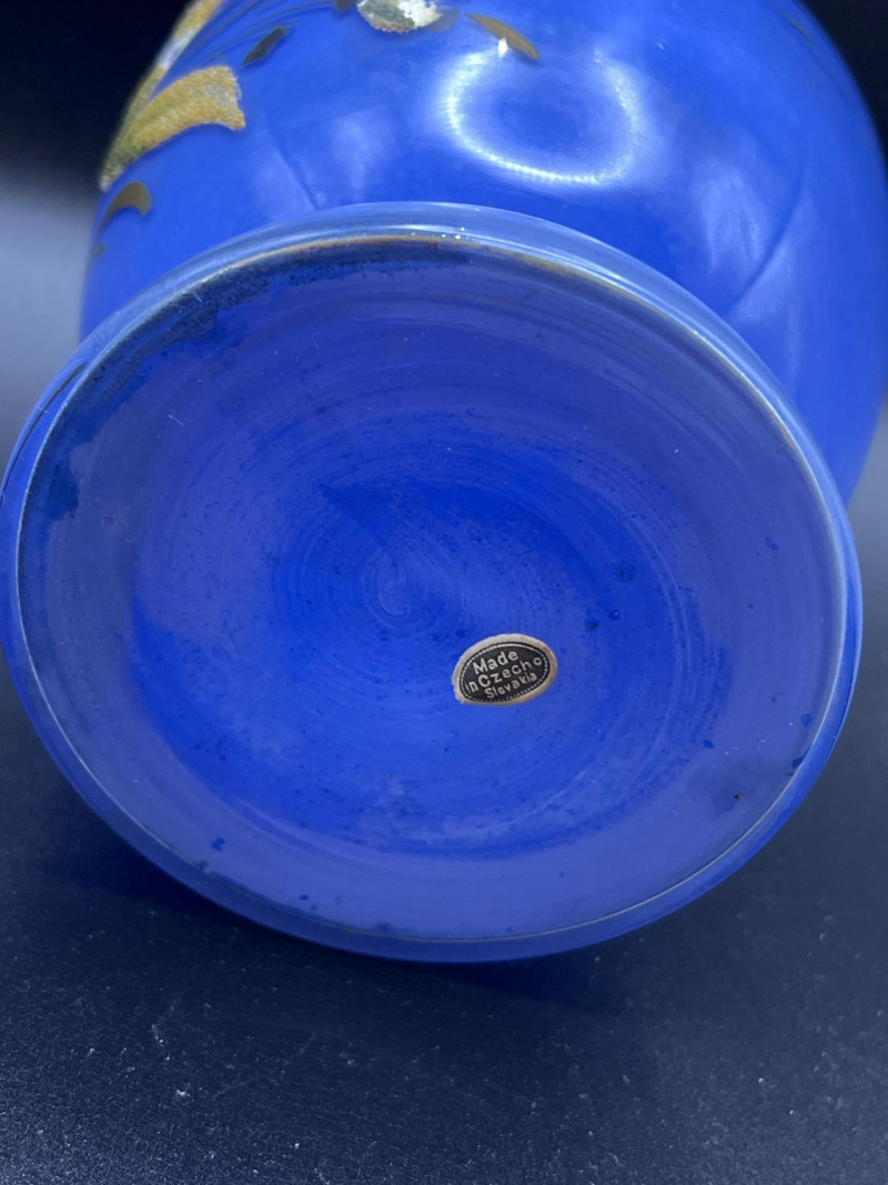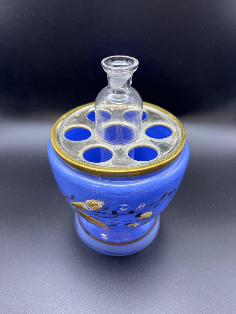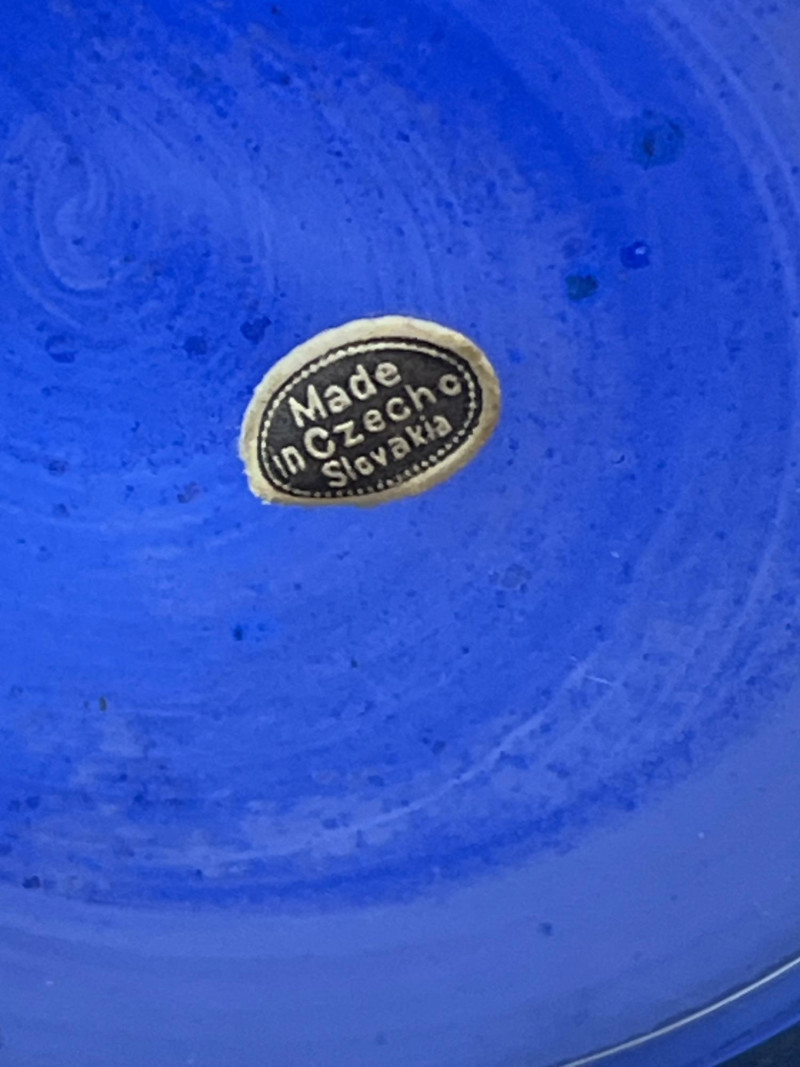 Lot # 36 - Mid Century Czechoslovakian Hand‑Decorated Cobalt Glass Liquor Egg