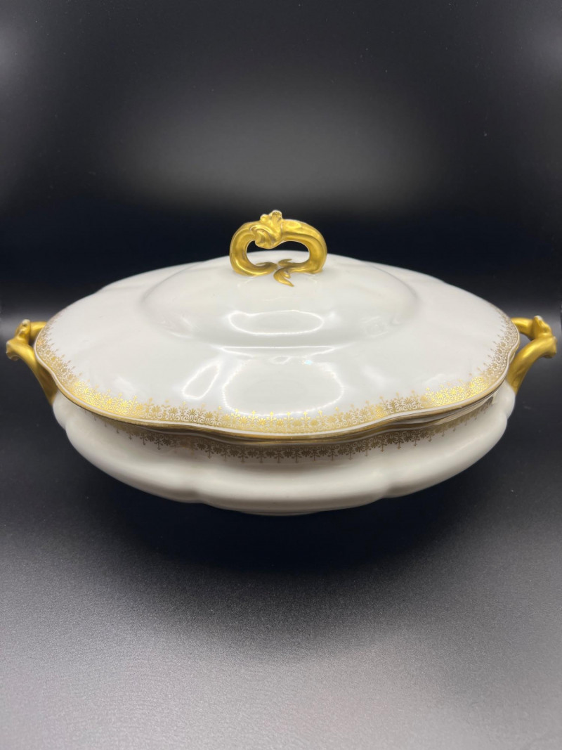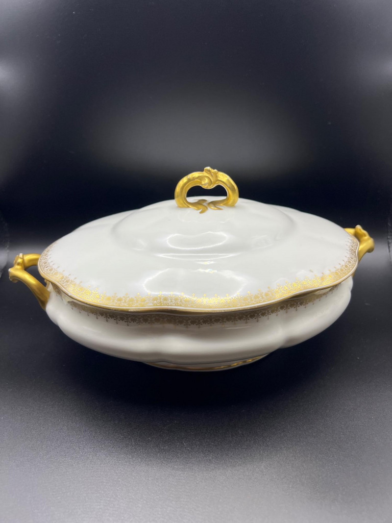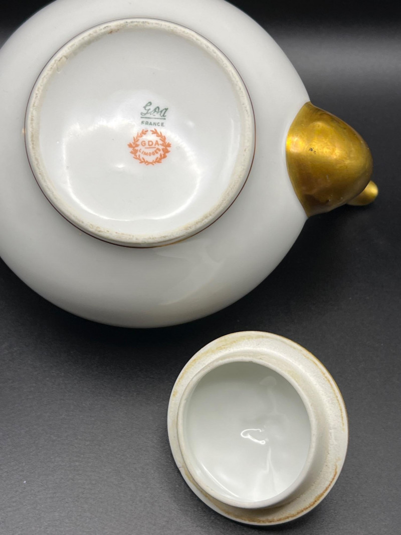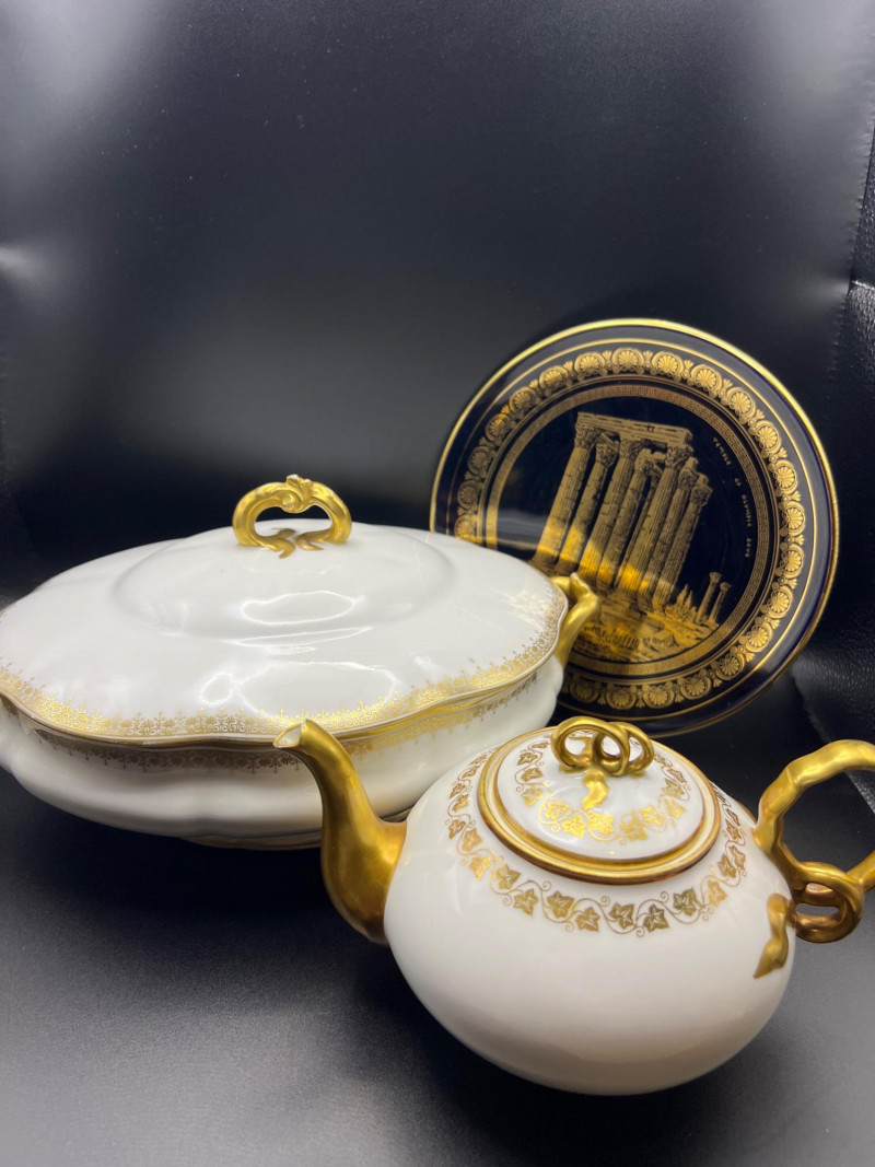 Lot # 38 - 24k Gold Spyropoulos Deco Plate and Limoges Covered Dish & Teapot