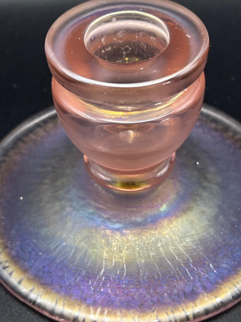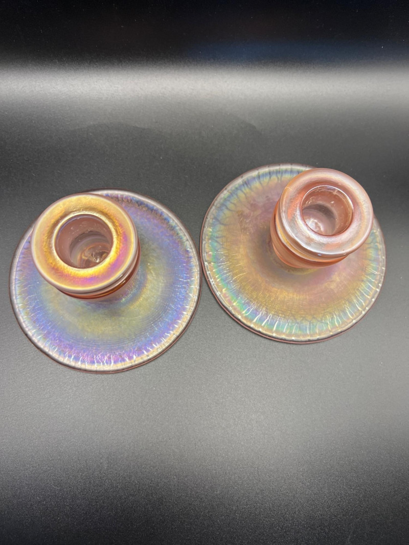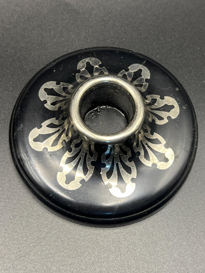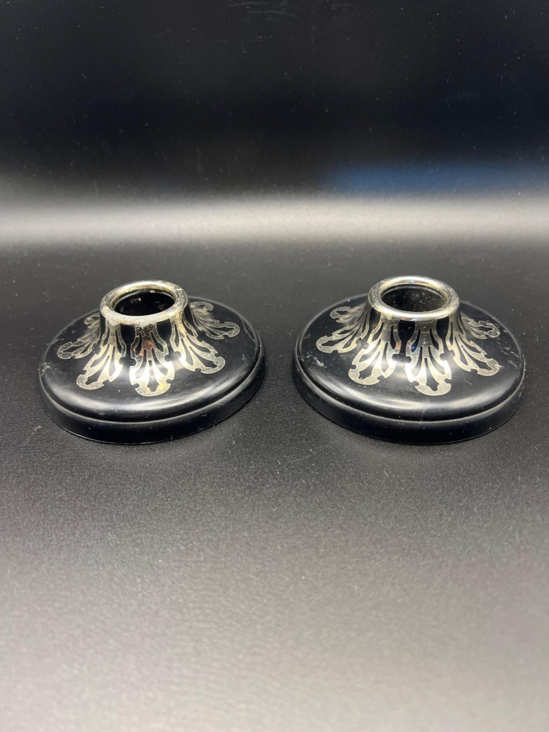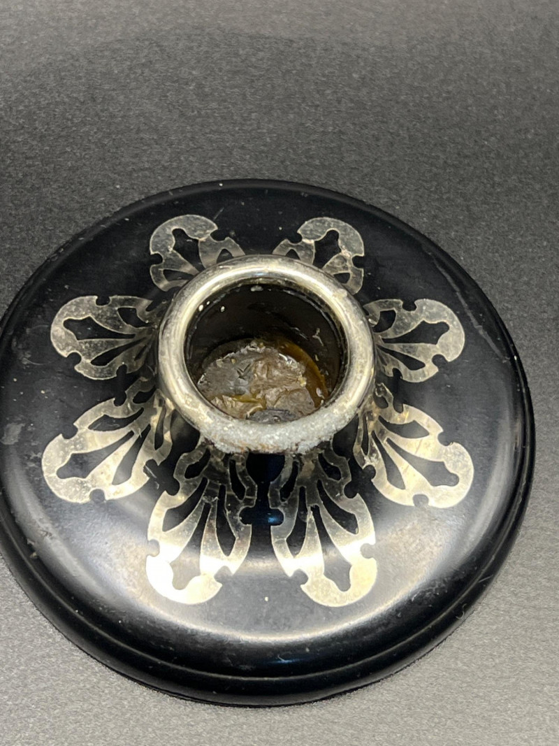 Lot # 46 - Fenton Velva Rose Stretch Glass & Harvite Black Silver Candle Holders