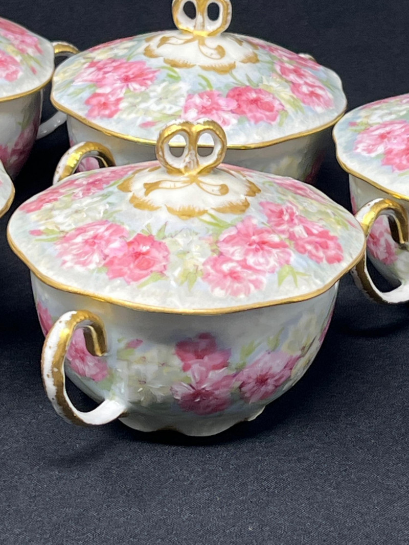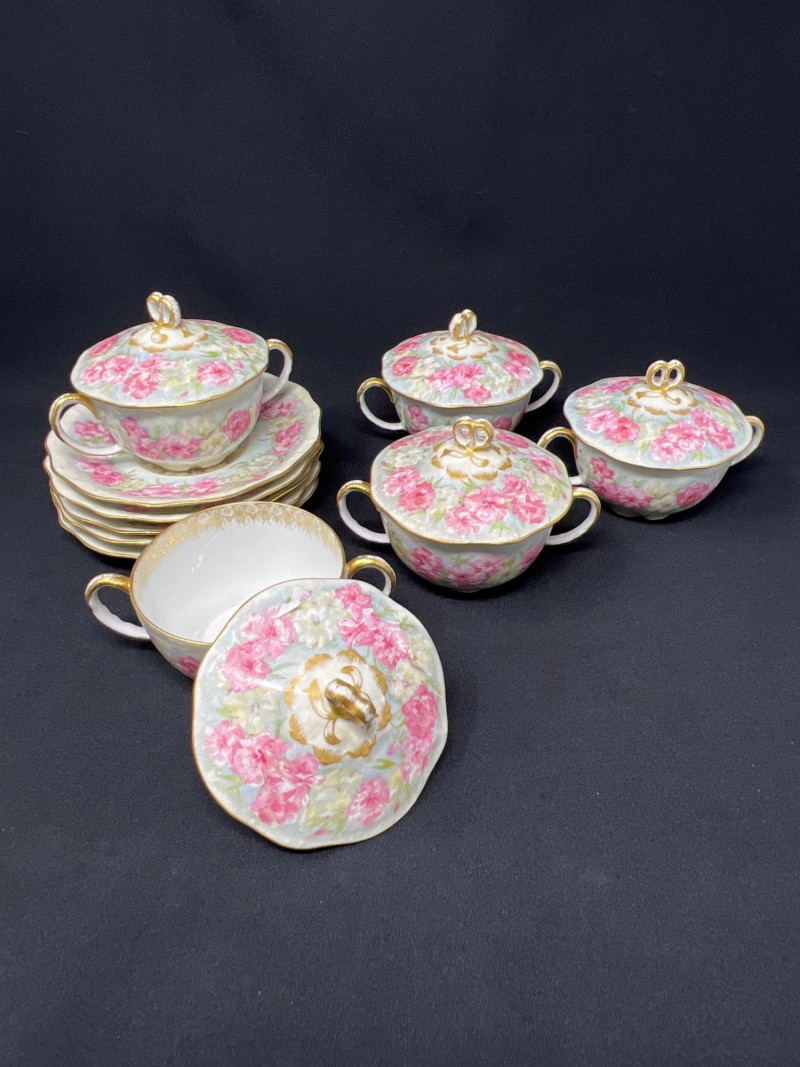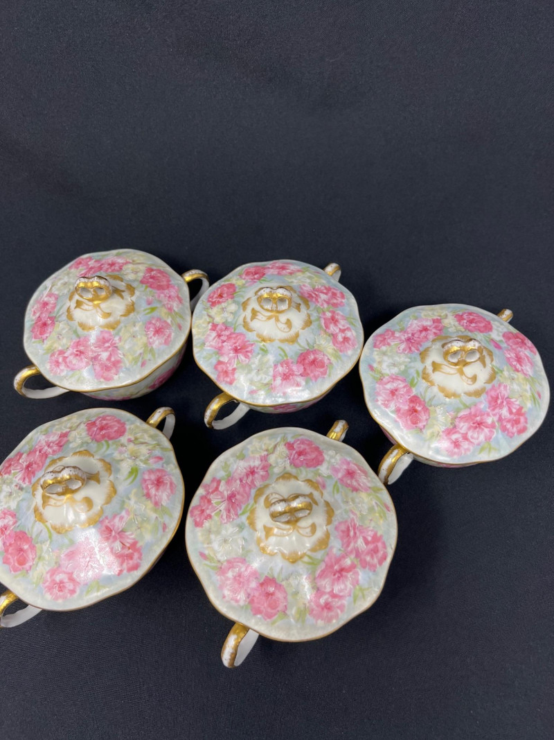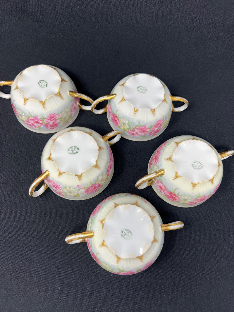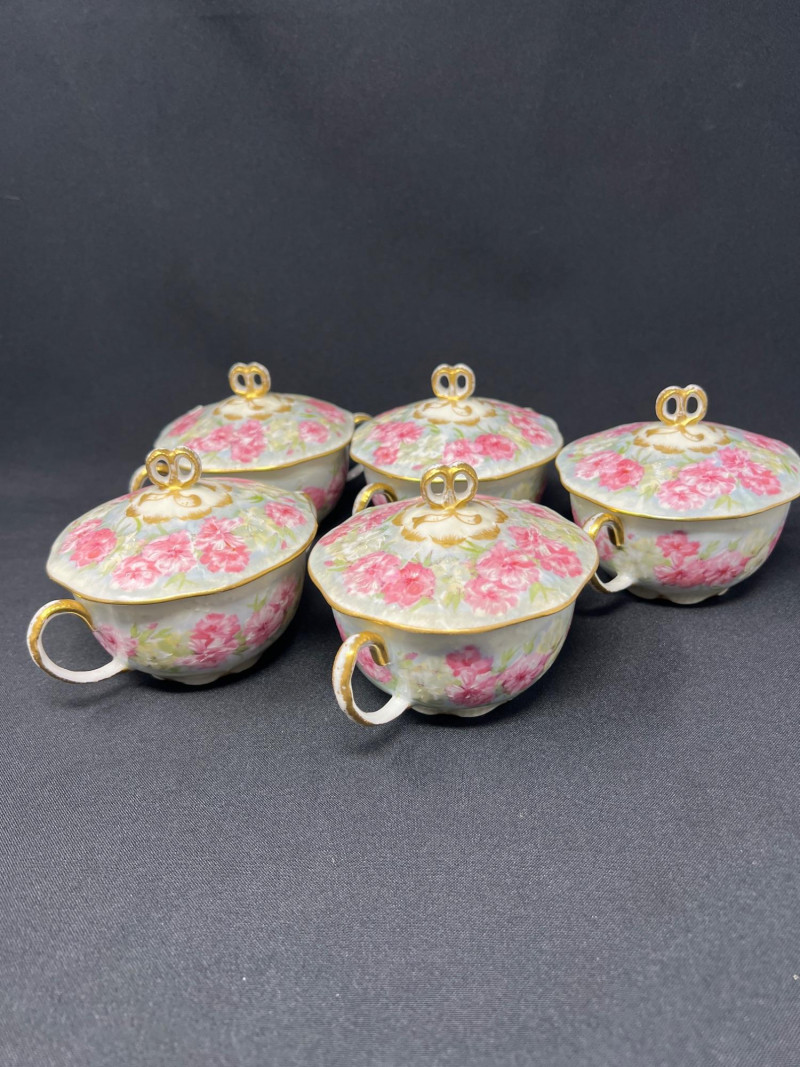 Lot # 66 - Antique J. Pouyat Limoges Bouillon Set — Five Lidded Cups with Saucers