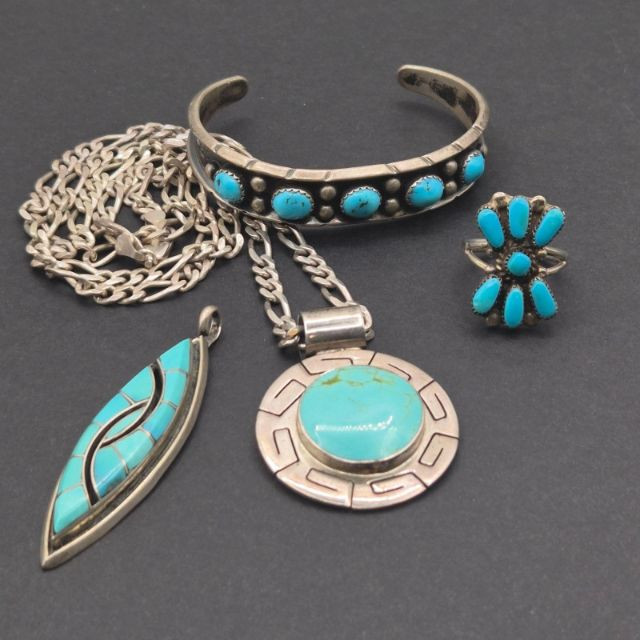 Lot # 74 - Southwest Artisan Turquoise Sterling Silver Jewelry Mix