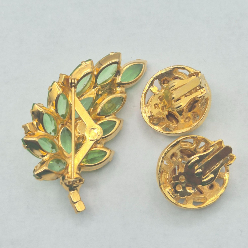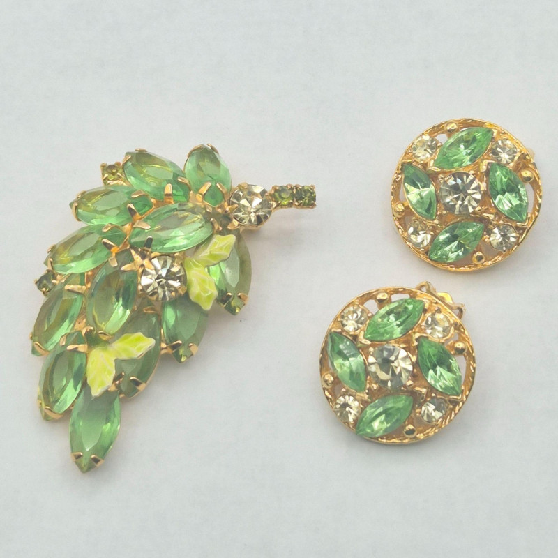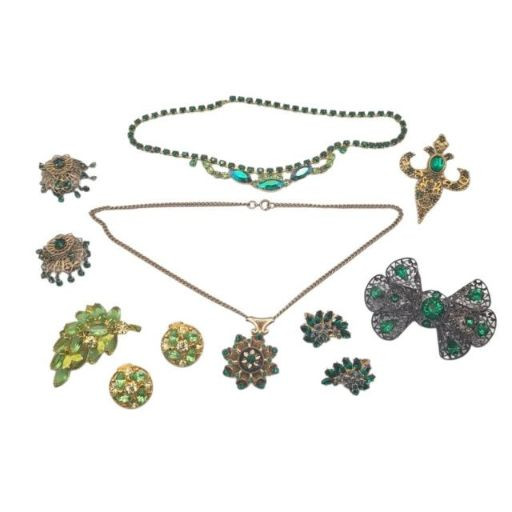 Lot # 78 - Rhinestones in Greens: Trifari, Czech & Unsigned