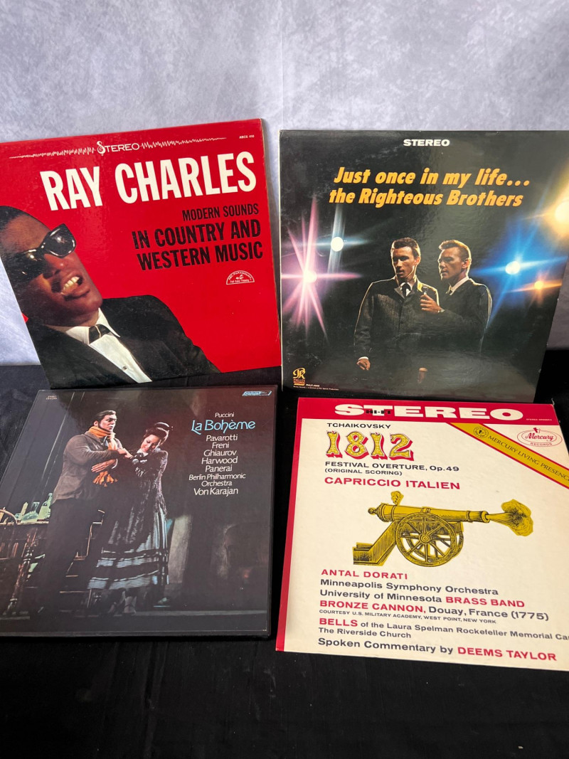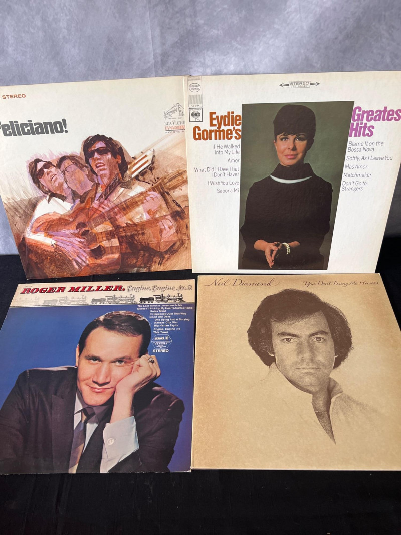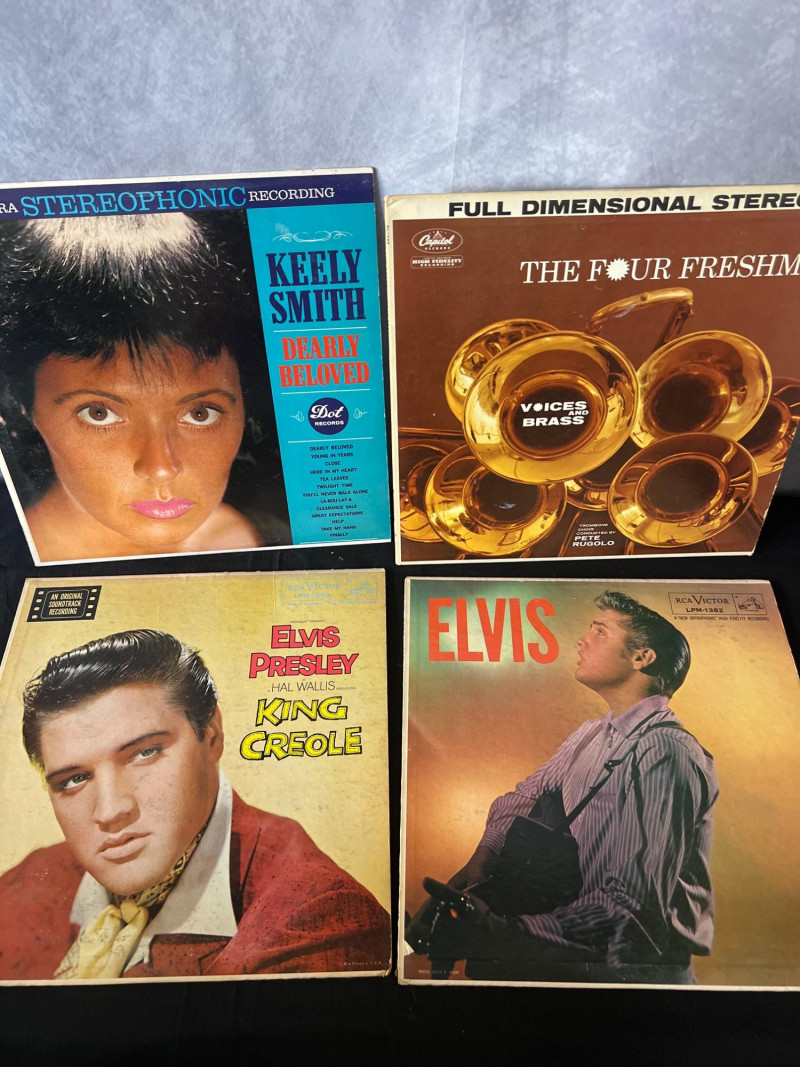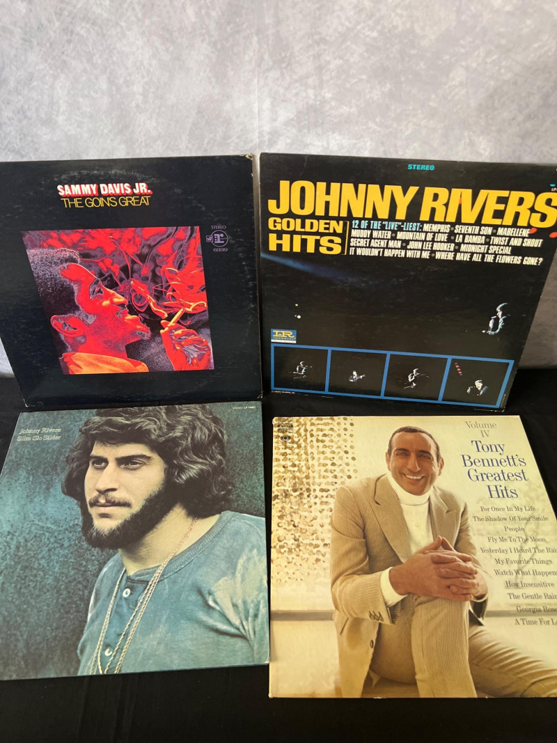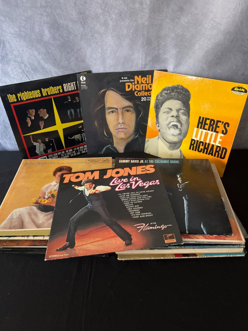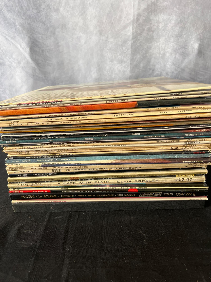 A curated stack of 37 vintage LP records spanning vocal jazz, classic pop, Broadway, opera, and early rock. This collection includes iconic artists such as Tony Bennett, Sammy Davis Jr., Elvis Presley, Ray Charles, Neil Diamond, and Pavarotti, along with notable soundtrack and classical selections. A strong mixed‑genre lot for collectors, resellers, or anyone building a foundational vintage vinyl library. Tony Bennett – Sings His All‑Time Hits Vol. II Tony Bennett – I Left My Heart in San Francisco Sammy Davis Jr. – What Kind of Fool Am I Sammy Davis Jr. – At the Coconut Gro3 The Lass With the Delicate Air The Last Grenade (and Other Themes) The Four Freshmen – Voices in Latin Sammy Davis Jr. – The Songs I Love Johnny Rivers – Slim Slo Slider José Feliciano – self‑titled Neil Diamond – You Don’t Bring Me Flowers Fair Lady The Music of Gomes Burton / Harrison / Andrews / Holloway – My Fair Lady Elvis Presley – A Date With Elvis Ray Charles – self‑titled The Righteous Brothers – Just Once in My Life Puccini – La Bohème (Pavarotti / Freni / Berlin Philharmonic / von Karajan) and more...Included Titles (Visible Spines)