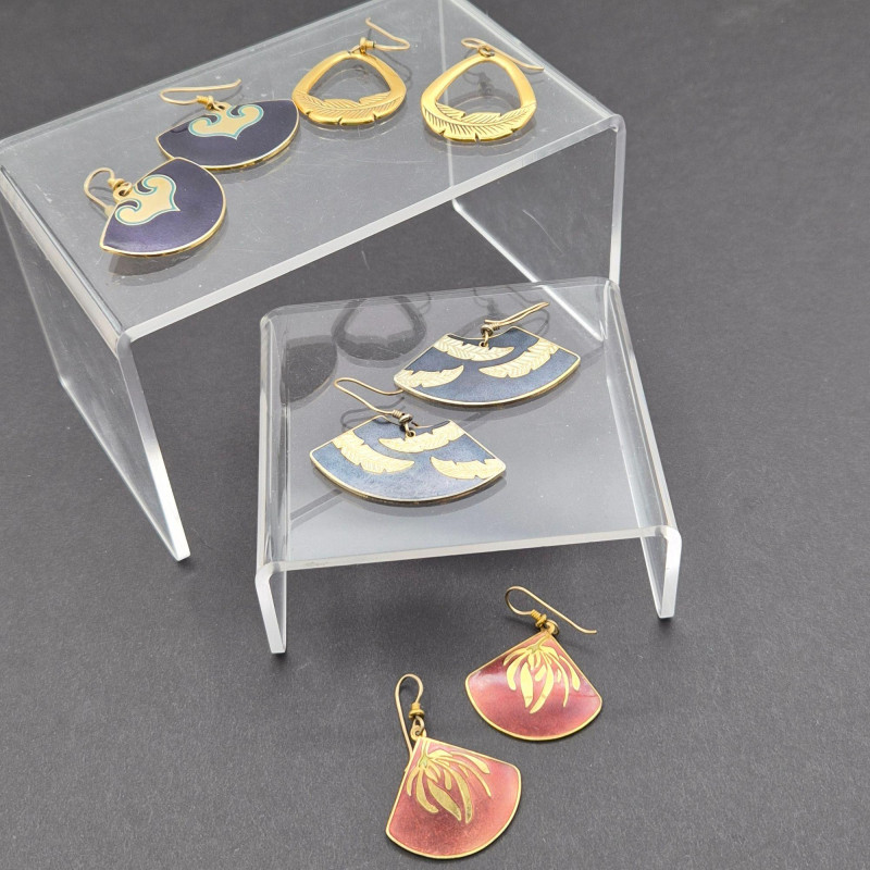 A vibrant estate grouping of four pairs of Laurel Burch enameled earrings in warm goldtone settings. Each pair showcases the artist’s signature whimsical motifs and rich enamel color, offering a mix of everyday wearability and bold, collectible style. Lightweight and comfortable, these earrings are perfect for layering, gifting, or adding a pop of color to any wardrobe. Ideal for Laurel Burch collectors.