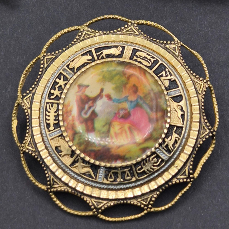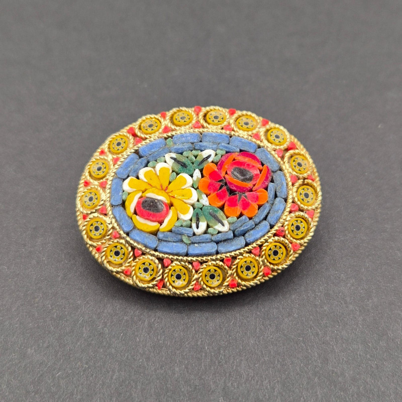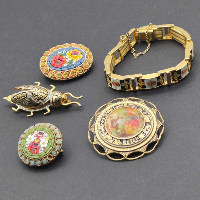 Lot # 123 - Vintage Damascene & Micro‑Mosaic – Pins, Bracelet