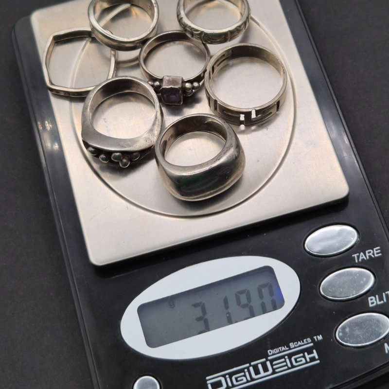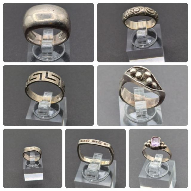 An attractive estate assortment of sterling silver rings offered in this lot. Sizes range 4 through 8, with a total weight of 31.9 grams. Each piece shows natural age patina, giving the group authentic vintage character and ready‑to‑wear charm for those who appreciate understated silver or prefer to restore and personalize. Ideal for stackable styling, or collectors seeking a petite, varied lot of sterling pieces. Pieces display expected surface wear and patina consistent with age