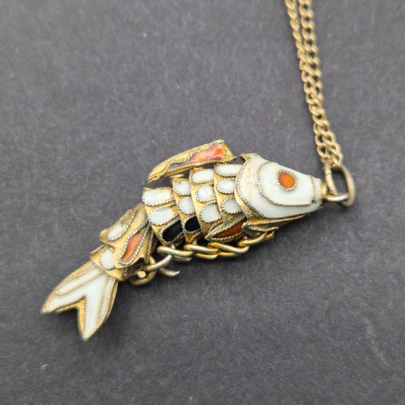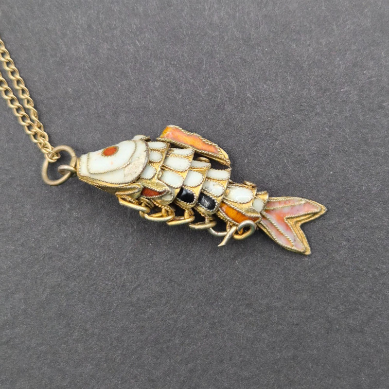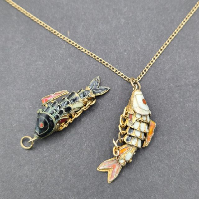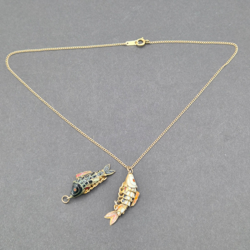 Lot # 109 - Articulating Cloisonné Fish Pendants, 14-Inch Gold‑Filled Chain