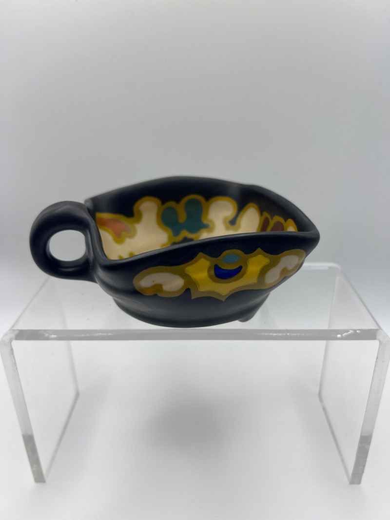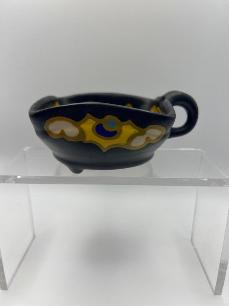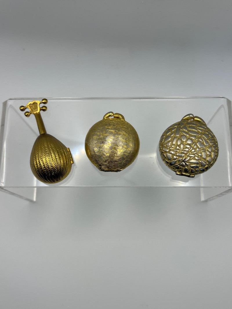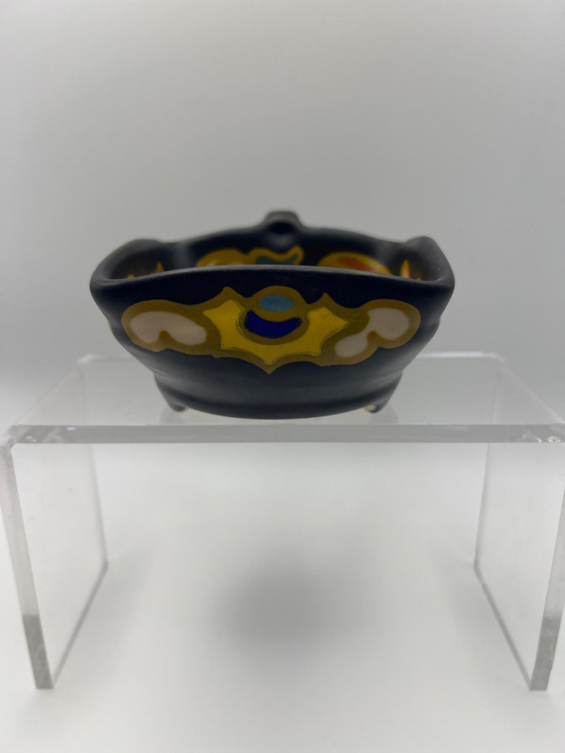 Charming mixed lot of decorative collectibles featuring European ceramics and vintage perfume compacts. Includes: Gouda Holland Ceramic Piece (3.5 inch x 3.5 inch) – Hand‑painted and marked Regina, showcasing the bold colorwork and stylized forms associated with Dutch art pottery. Crown Staffordshire Fine Bone China (9 inch length x 2 inch width) – Marked Kowloon, representing classic English craftsmanship and refined pattern work. Three Vintage Perfume Compacts – One Avon key‑shaped compact and two Houbigant round compacts, each with hinged lids and gold‑tone finishes. Lovely as vanity décor, small keepsake holders, or collectible accents. A refined assortment ideal for collectors of European ceramics, vintage perfume accessories, and small decorative objects.