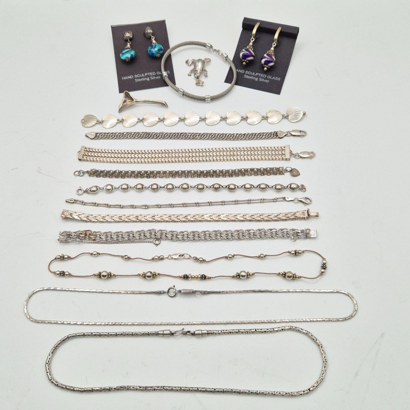 Lot # 135 - Sterling Jewelry Mix– Bracelets, Chains, Pendant & Artisan Earrings