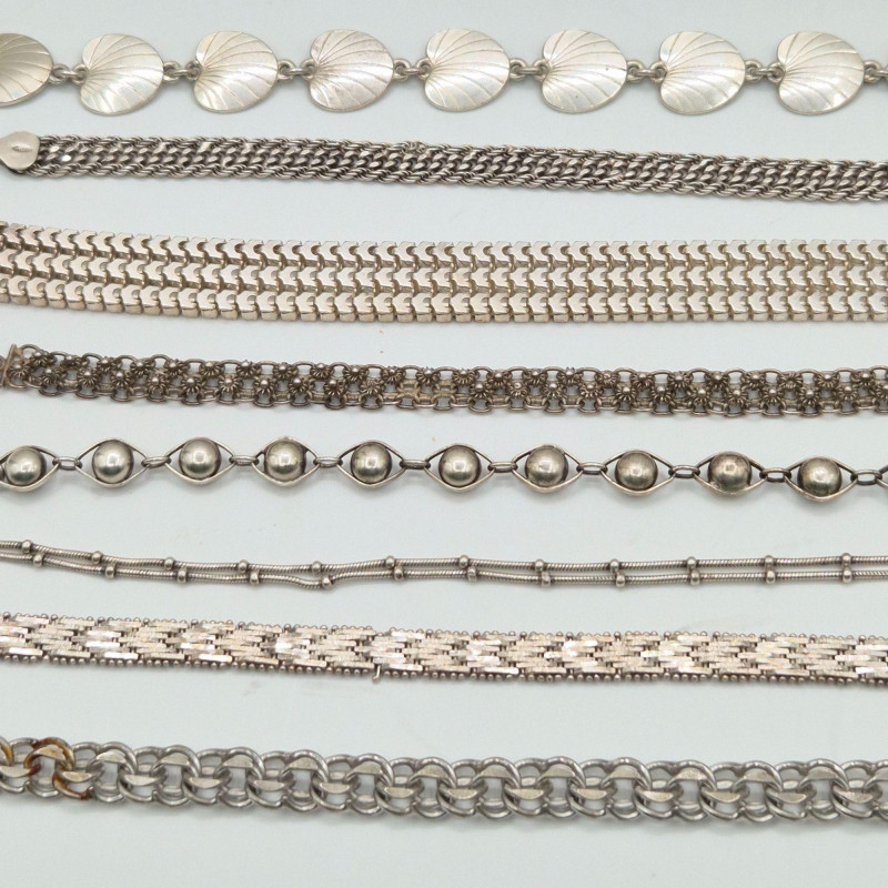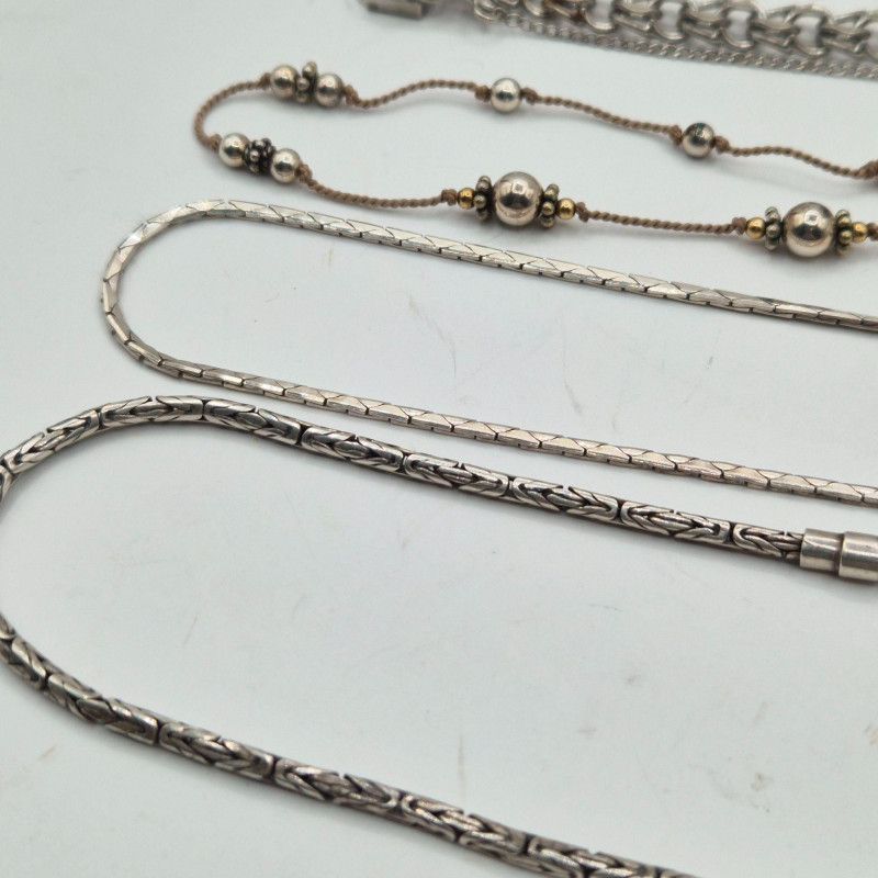 A substantial and varied collection of sterling silver jewelry, all pieces stamped, offering both wearable designs and artisan craftsmanship. This lot includes classic chains, sculptural earrings, and a standout Scandinavian‑style bracelet. Included in the lot: Total weight:
