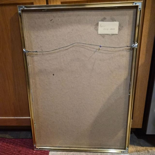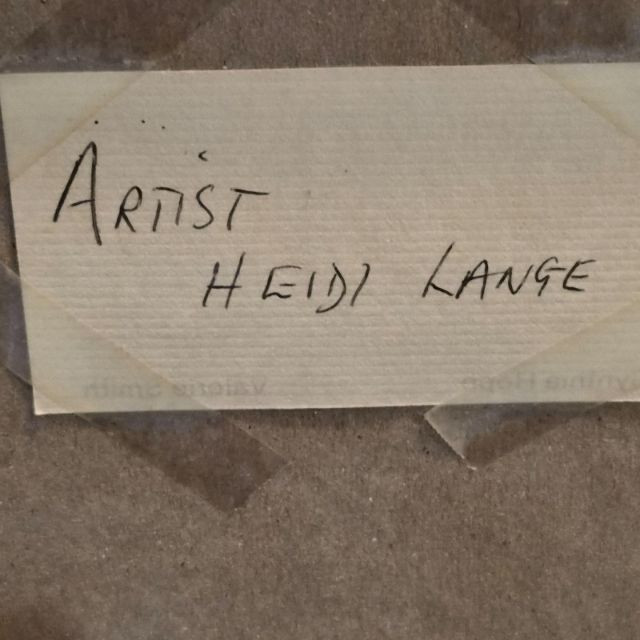 A bold, expressive textile artwork by renowned artist Heidi Lange, celebrated for her dynamic portrayals of African and tribal theme. Executed in a black‑and‑white batik technique, the piece showcases rhythmic patterns, dramatic contrast, and hand‑worked texture that gives the composition depth and movement. Framed in gold metal with glass and measuring 21" x 30", it carries a rear artist tag confirming Lange’s authorship. A visually commanding work ideal for collectors of global, tribal, or textile‑based art.