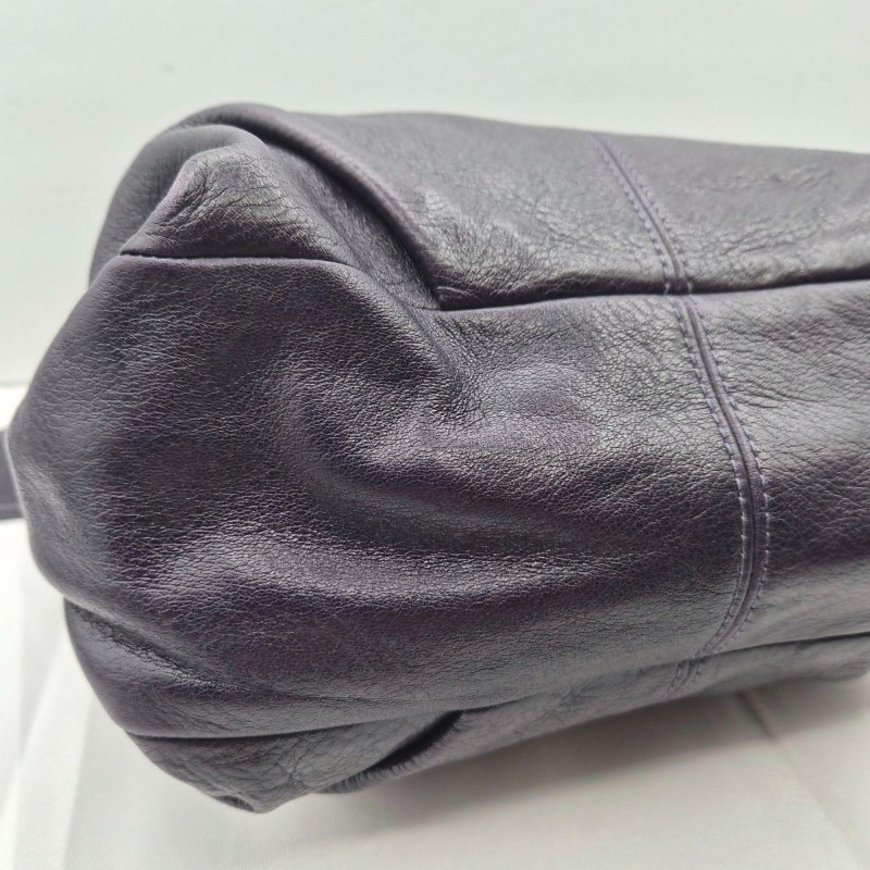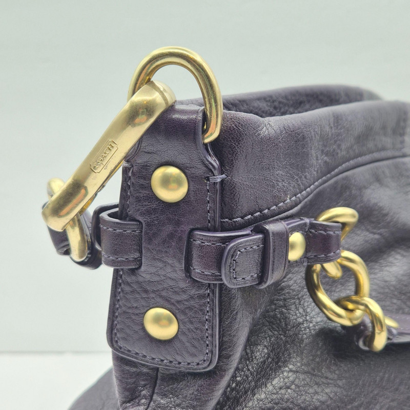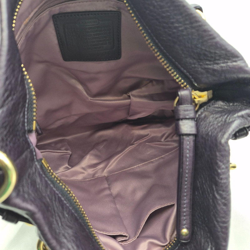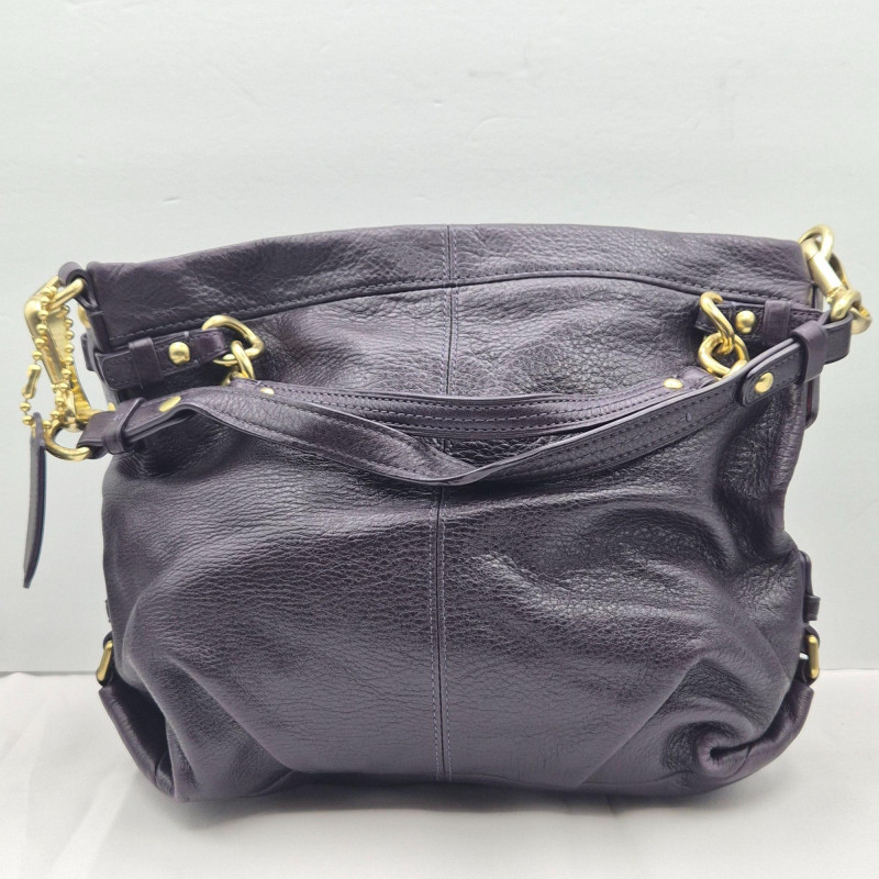 A richly hued eggplant purple Coach Brooke Hobo, crafted in supple pebbled leather with that signature slouchy, easy‑to‑love silhouette. This classic style features both hand/arm straps and a detachable shoulder strap, giving you effortless versatility from day to evening. The interior is lined in soft lavender satin, clean and well‑kept, with a zip pocket and slip pockets for tidy organization. Finished with brass hardware, an authentic Coach hangtag, and comes with dust bag, this piece brings together beauty, function, and that unmistakable Coach heritage. Product Details A standout choice for Coach collectors and anyone who loves a slouchy, luxe everyday bag in a rare, saturated color.