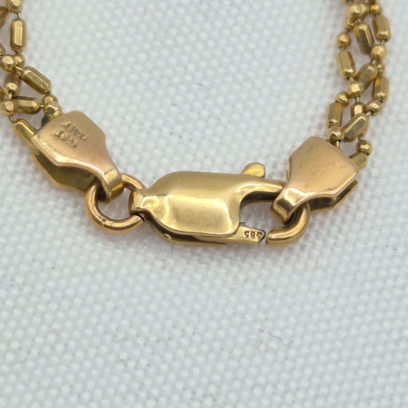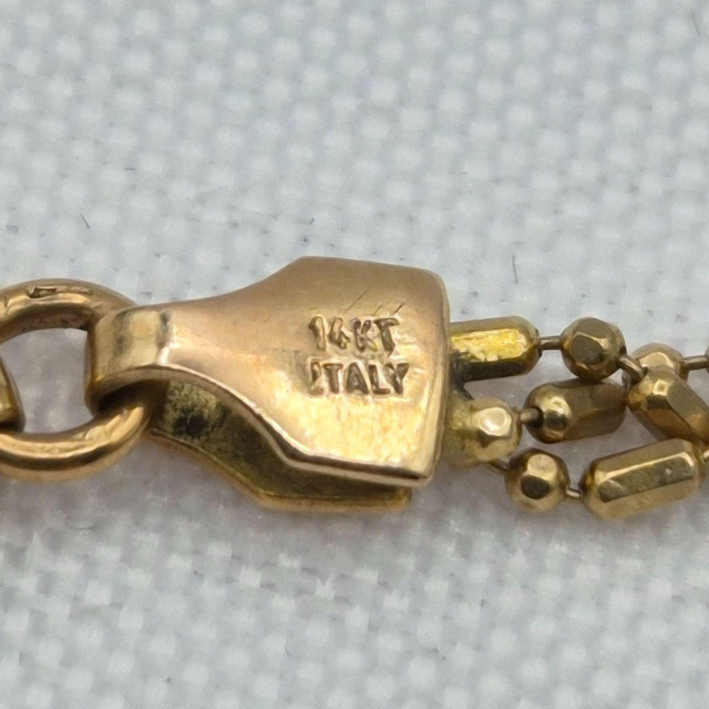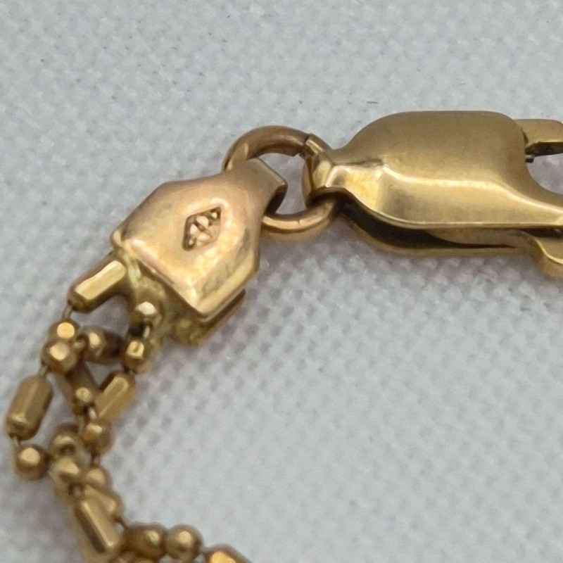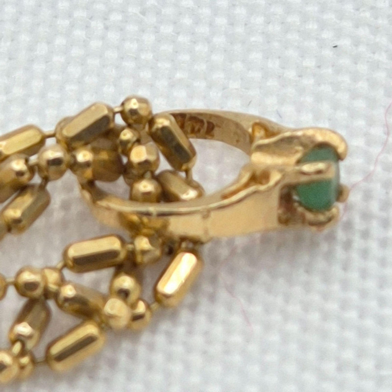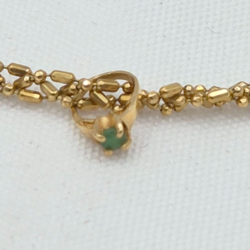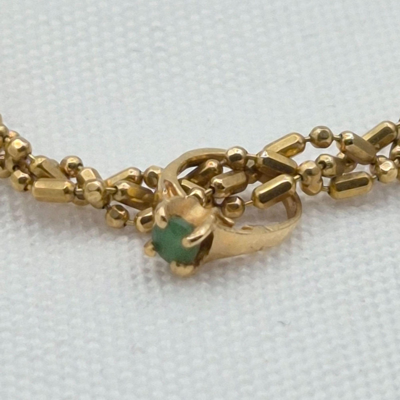 A delicate and elegant 14k gold bracelet, crafted in a braided ball‑chain style and finished with a secure claw clasp stamped 585 / 14k Italy. Attached is a petite emerald ring charm, also stamped 14k, adding a sweet pop of color and a touch of fine‑jewelry charm. A lovely, lightweight piece—perfect for stacking, gifting, or adding to a charm bracelet collection.