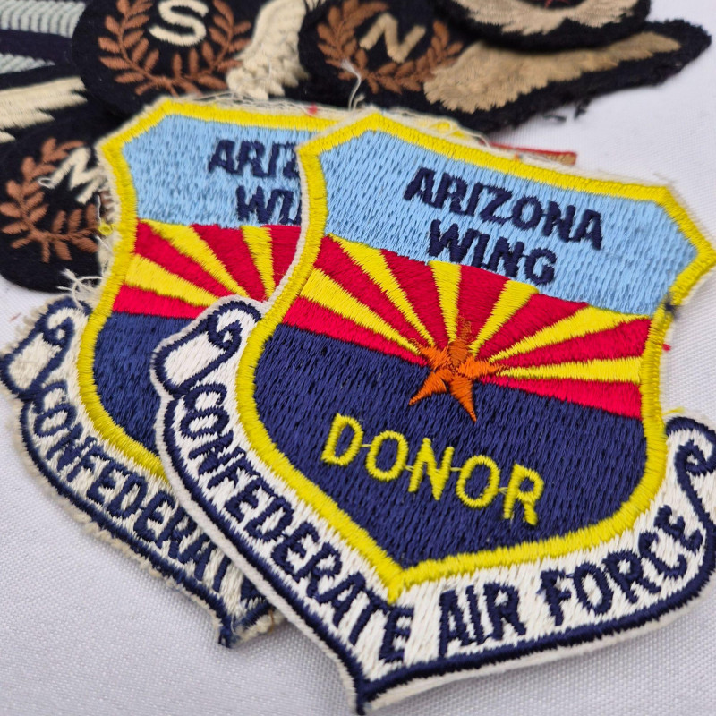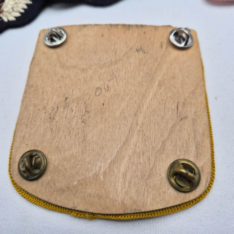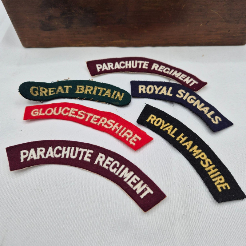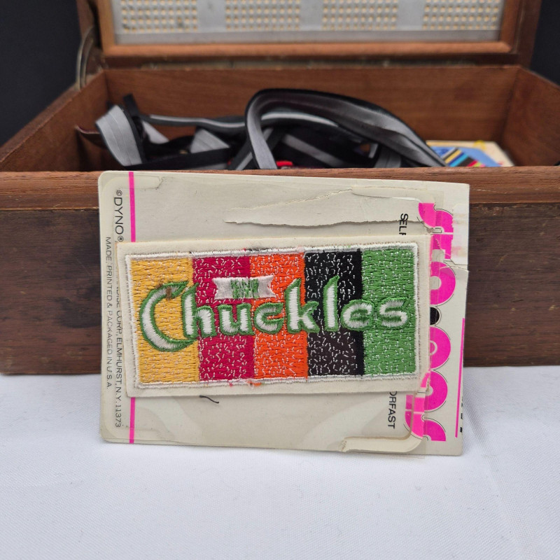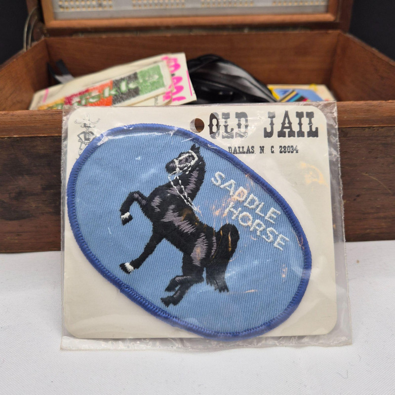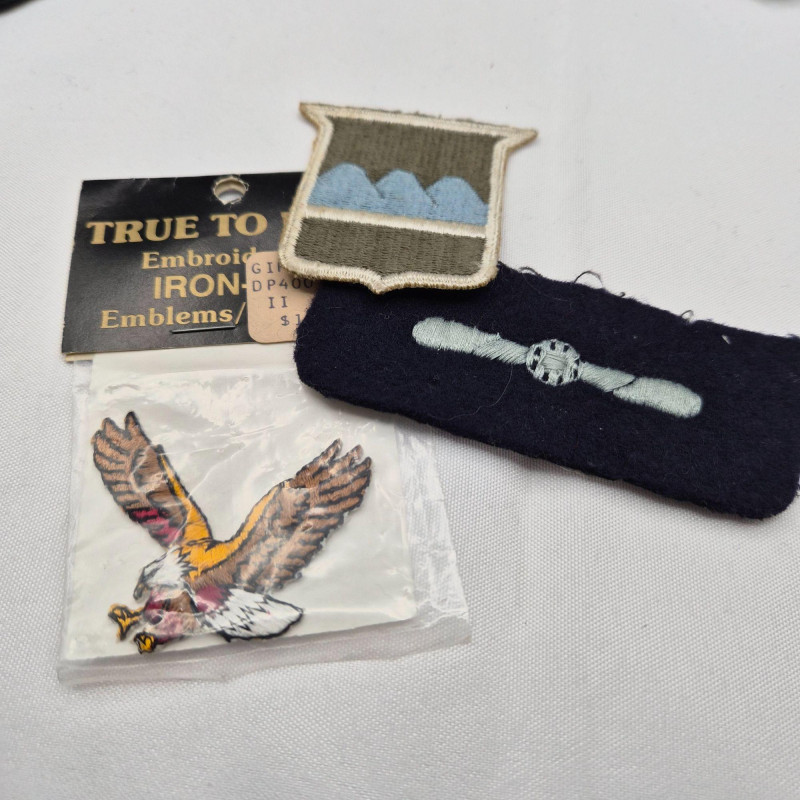 A character‑rich wood storage box—measuring 10.75" x 7.5" x 4.25"—packed with an eclectic assortment of vintage embroidered patches and stickers. This mix spans decades and themes, offering a treasure‑hunt experience for collectors, crafters, and nostalgia lovers. Inside you’ll find a variety of WWII‑era and military patches, along with pieces representing Great Britain, the United States, Mt. St. Helens ’80, and more. A fun, varied collection with history, color, and personality. A great lot for display, resale, or creative projects—full of discovery and vintage charm.