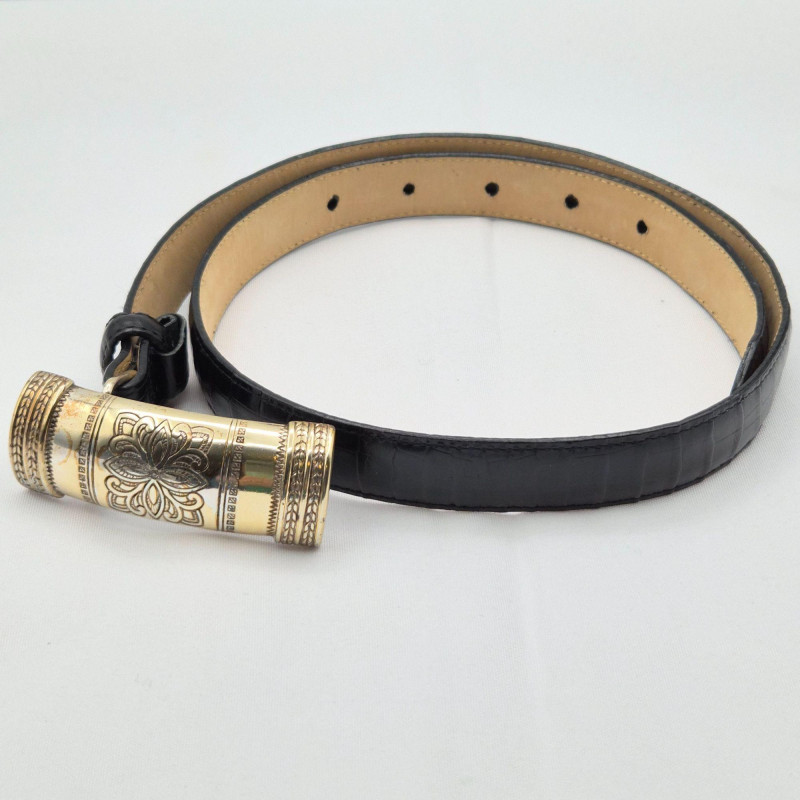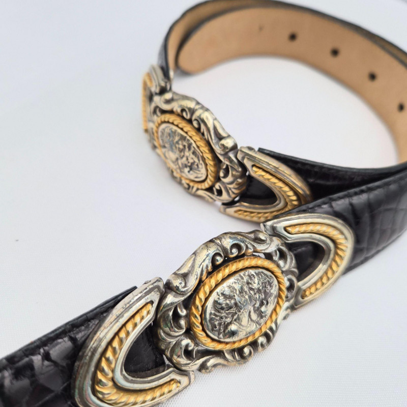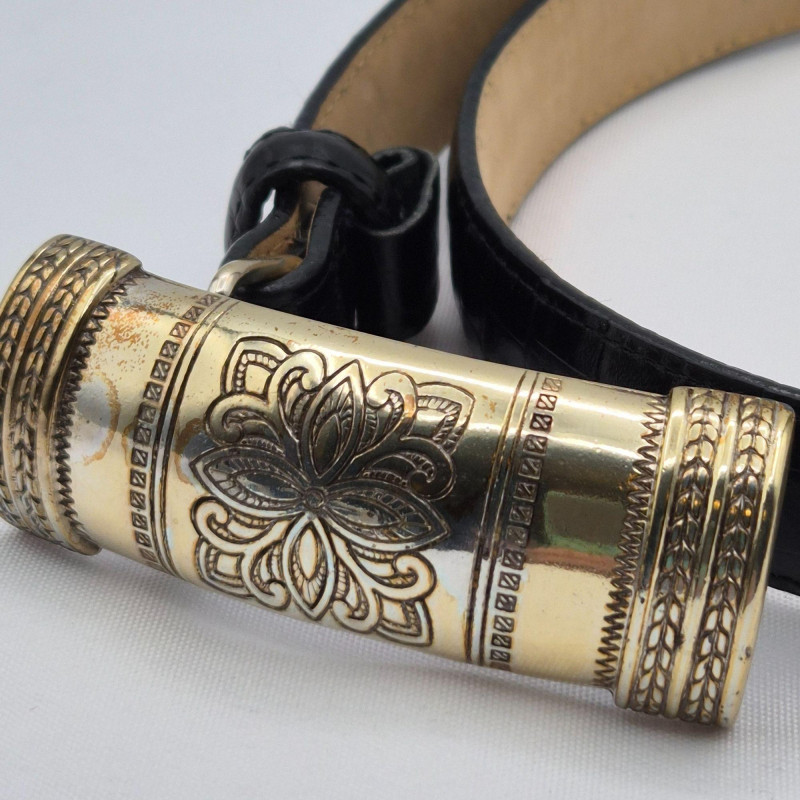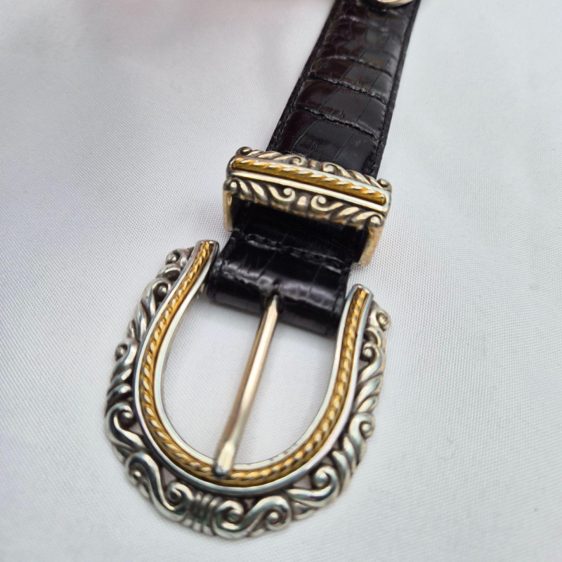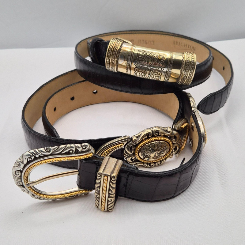Lot # 29 - Brighton Black Croc Leather Fashion Belt Duo - Size Small & Med