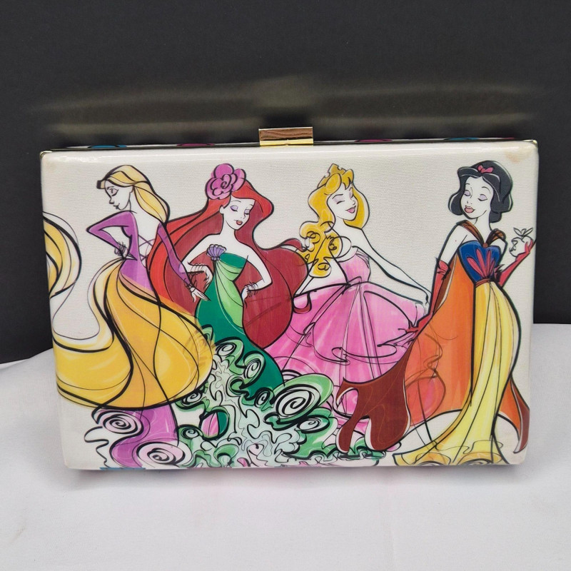 A charming Disney princess duo perfect for collectors, décor lovers, or gifting. This pairing includes a bold Snow White wall print and a glossy Disney Parks princess clutch with classic animated styling