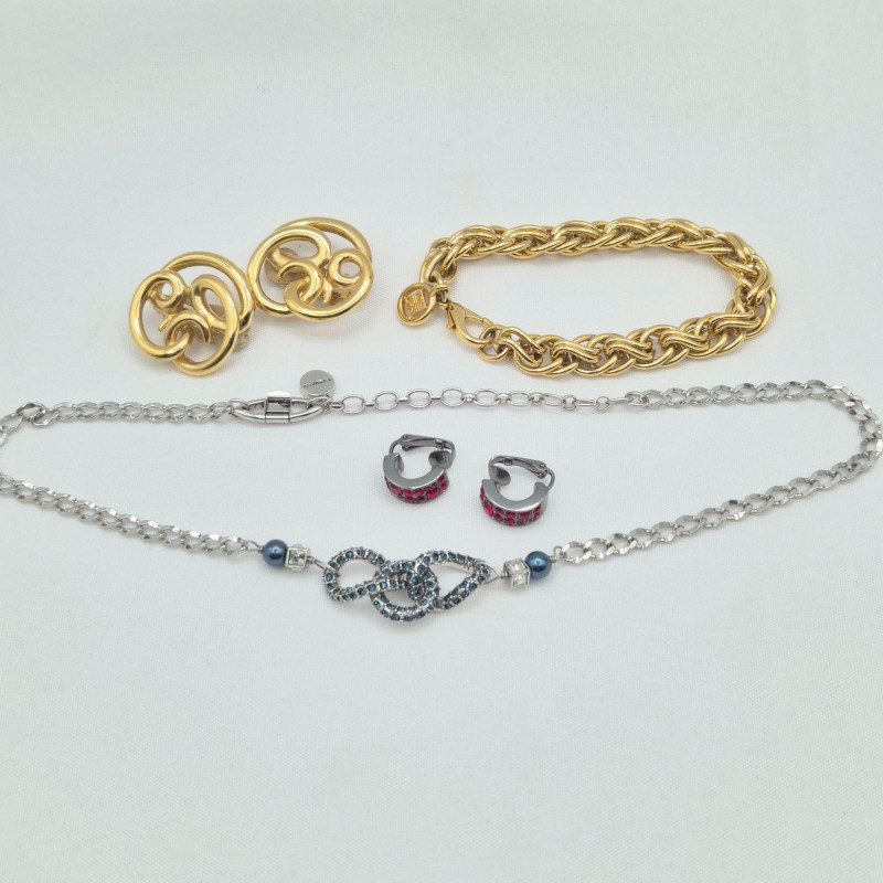 Four‑piece assortment of Givenchy‑stamped fashion jewelry in mixed goldtone and silvertone, spanning classic 1980s styling through timeless modern wearability. Each piece carries the brand’s signature bold elegance and quality construction. Included Pieces