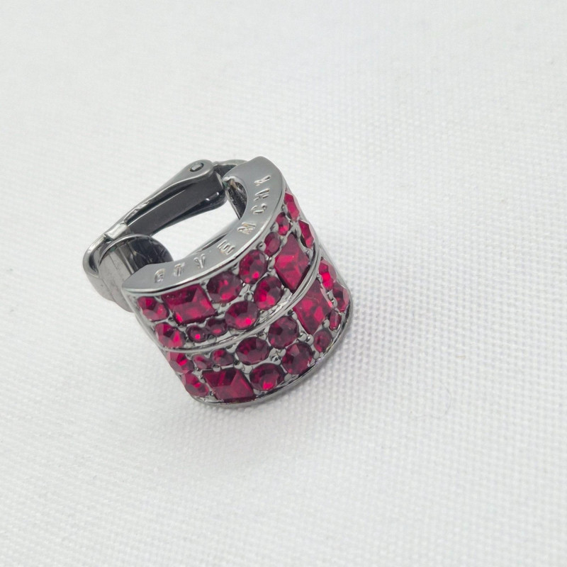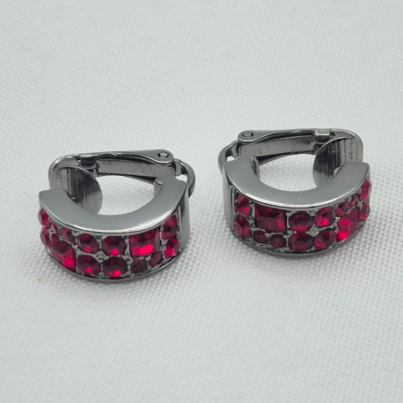 Petite yet vibrant half‑hoops set with rich red crystals, perfect for a pop of color.