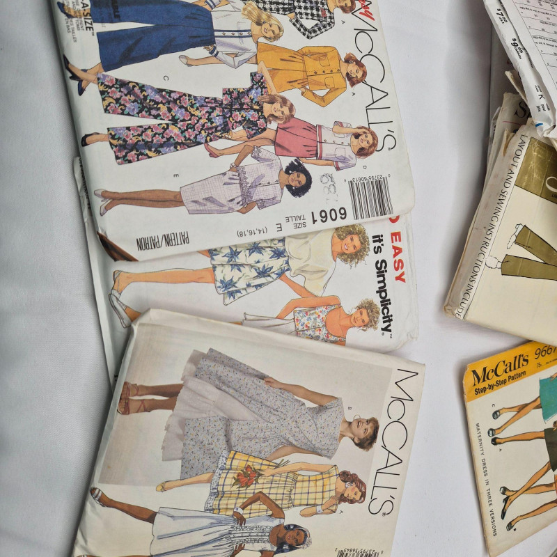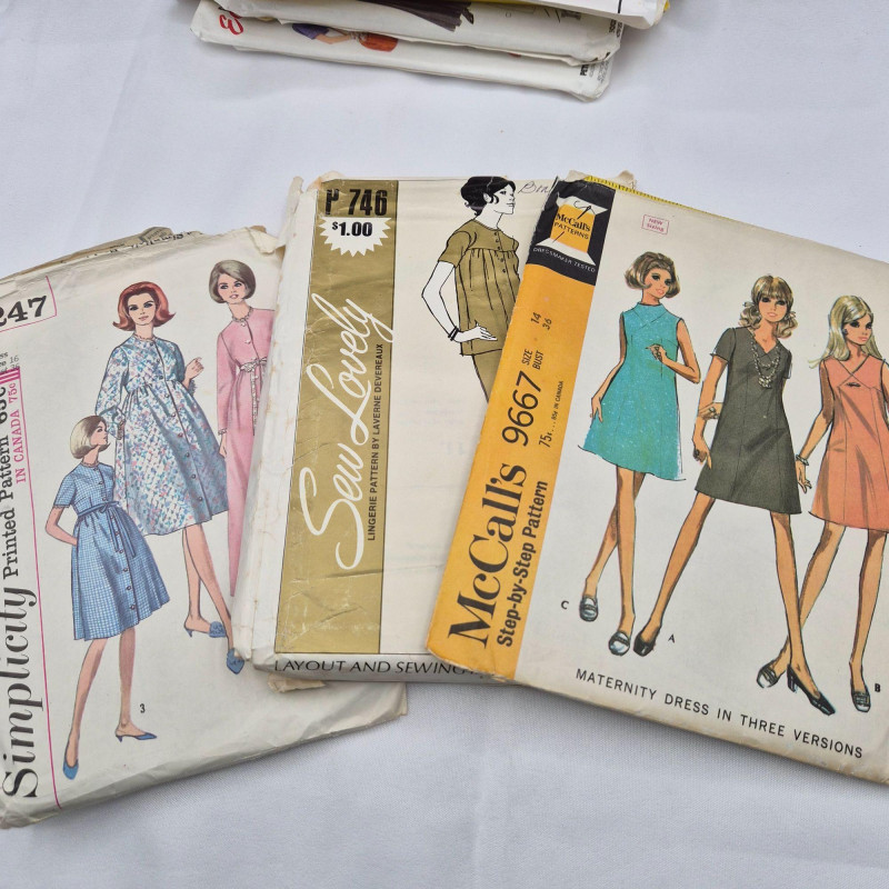 A diverse collection of 21 vintage sewing patterns spanning three major brands—McCall’s, Simplicity, and Butterick—and covering a wide range of garment types and decades. This lot includes patterns for children’s clothing, costumes, women’s dresses, pants, maternity wear, and more, offering a fun mix for sewists, collectors, and retro fashion enthusiasts. Most envelopes have been opened, but the contents appear complete and reusable, with typical age‑related wear to packaging. Multiple years & eras represented: 1963, 1965, 1967, 1969, 1970, 1971, 1973, 1975, 1978, 1988, 1989, 1990, 1992, and 1993. A great multi‑era assortment for pattern collectors, vintage clothing makers, or anyone who loves sewing with authentic retro designs.