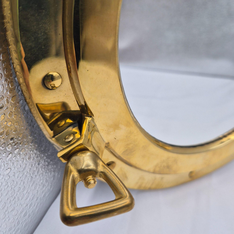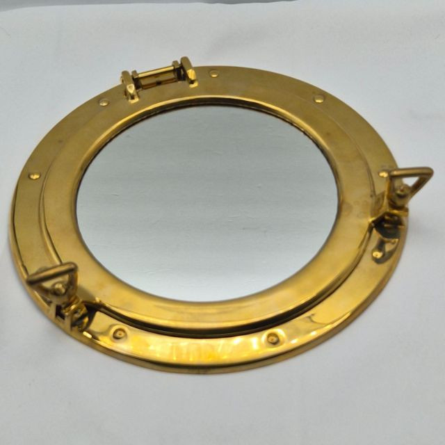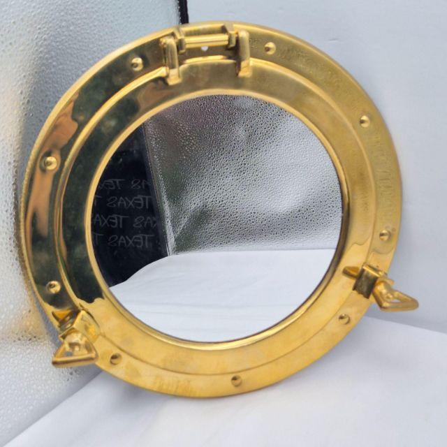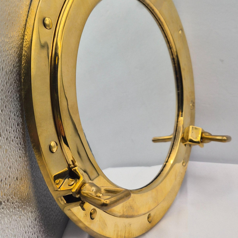 A striking brass porthole wall mirror, crafted in the classic style of a ship’s window. This 11.5-inch round mirror features a hinged frame and latch details that echo authentic maritime hardware, giving it both sculptural presence and seafaring nostalgia. A perfect accent for nautical interiors, lake houses, beach cottages, or maritime collectors, this mirror brings a touch of ocean adventure to any space.