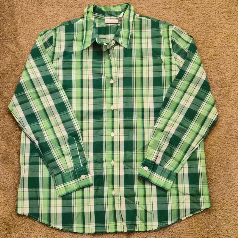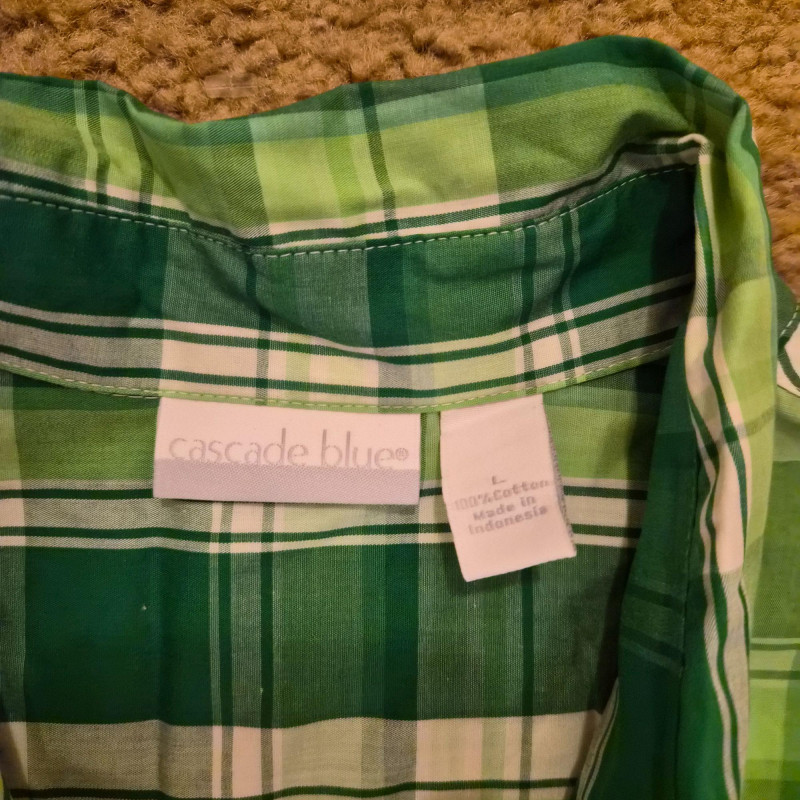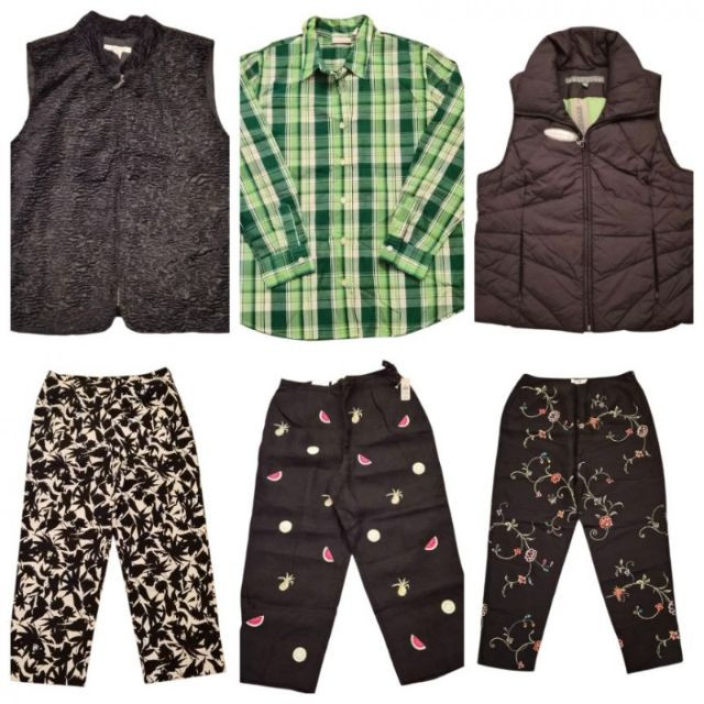 A curated mix of two vests, a long‑sleeve cotton shirt, and three pairs of pants, all in size Large. Several pieces are NWT, adding extra value for wardrobe building. A well‑rounded clothing bundle with natural fibers, layering options, and a clean, ready‑to‑wear presentation.