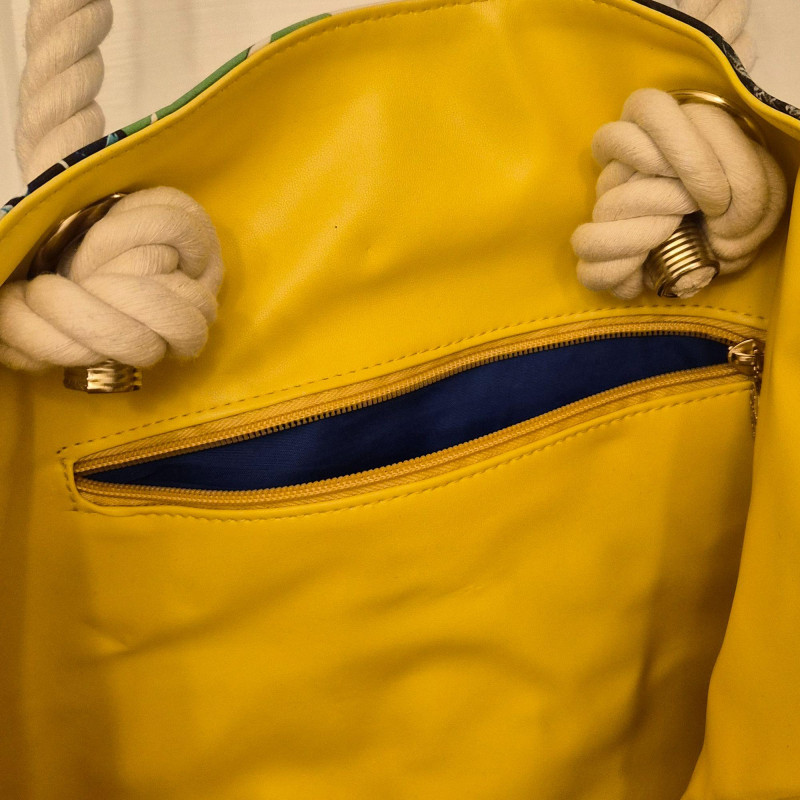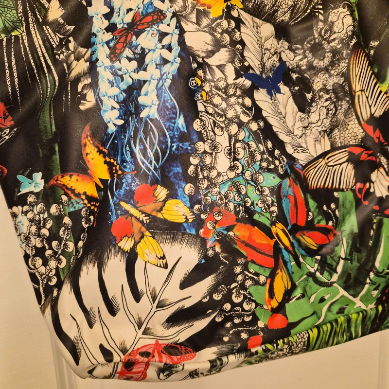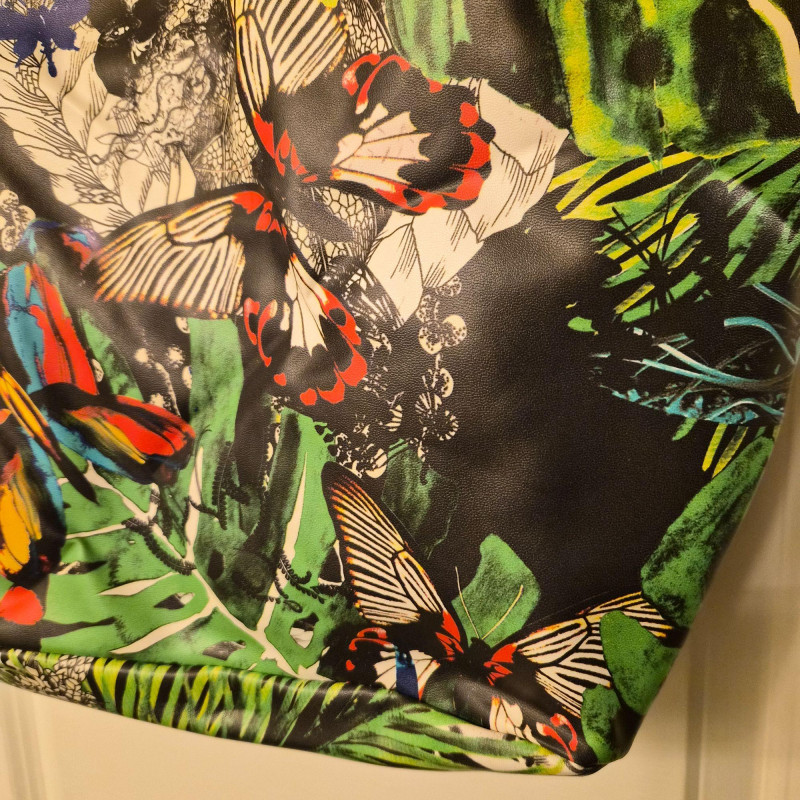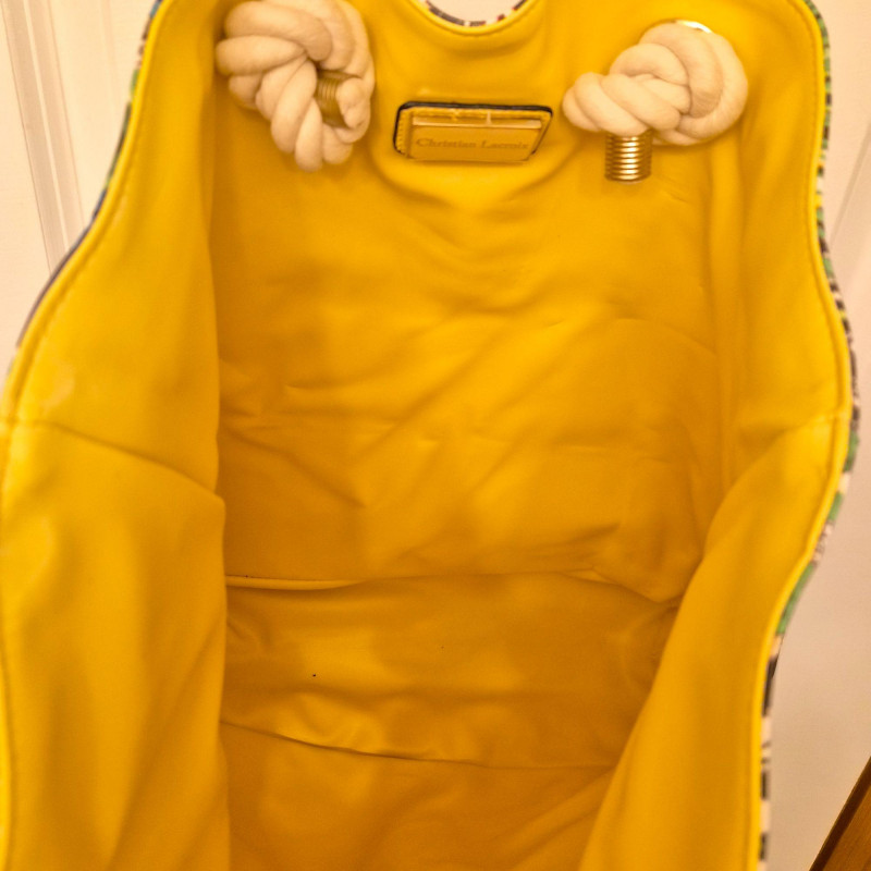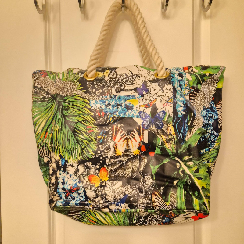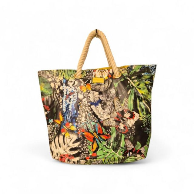 Features an intricate butterfly and tropical‑inspired design in Lacroix’s signature bold style. Constructed from a vinyl or polyurethane‑like material that’s lightweight and easy to wipe clean. Finished with thick rope handles for a chic, summery look.