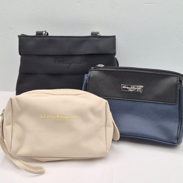 A refined three‑piece Salvatore Ferragamo accessory and travel set, blending sleek modern styling with the brand’s signature understated luxury. This trio includes: A versatile designer bundle for collectors, travelers, or anyone who appreciates Ferragamo’s timeless aesthetic.