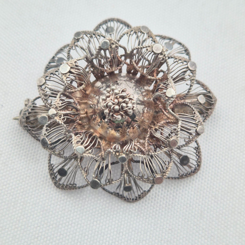Lot # 117 - Mexican Silver Wedding Necklace, Filigree Brooches & Alpaca Variety