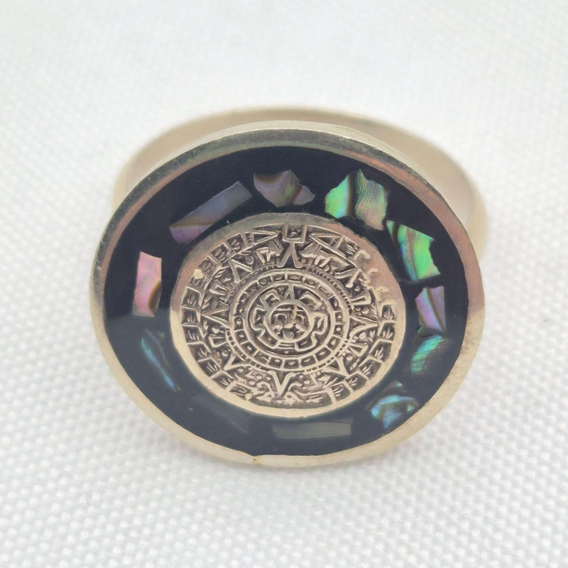Alpaca Mexico Onyx & Abalone Round Pin