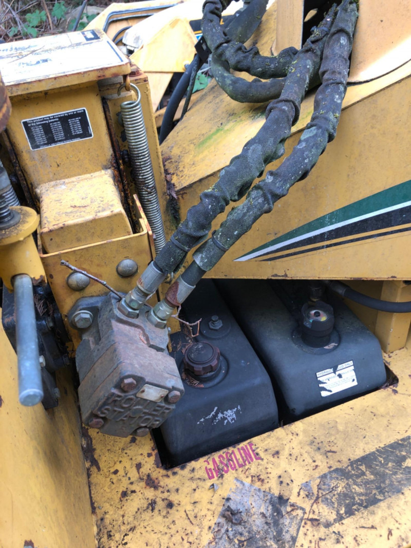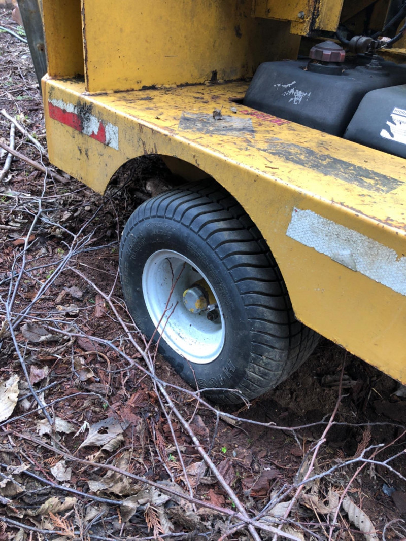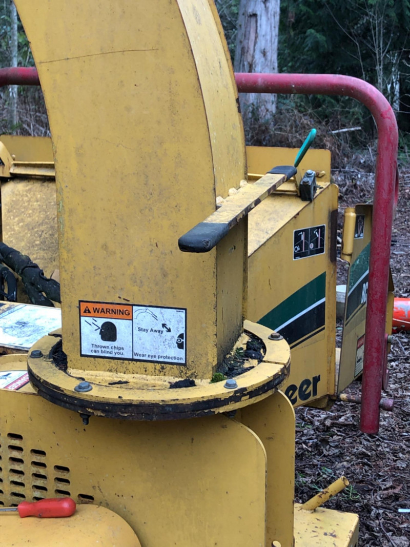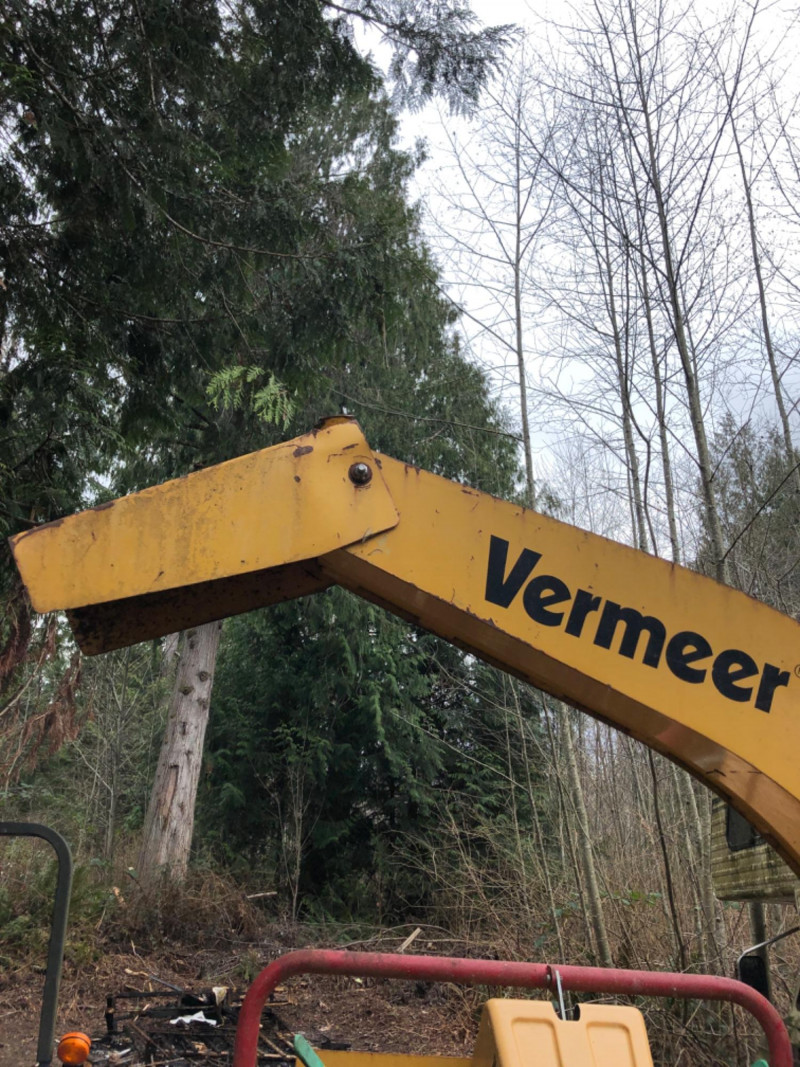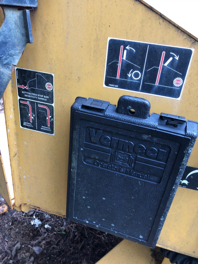 2008 Vermeer BC600XL tow‑behind brush chipper powered by a 27 HP Kohler Command Pro engine. This compact disc‑style chipper processes material up to 6" diameter and features Vermeer’s AutoFeed II® system and Bottom Feed Stop Bar for operator safety. Equipped with a single horizontal feed roller delivering 550 lb clamp load, a two‑stage dry air cleaner, and a 7‑gallon fuel tank. Machine dimensions include 110" length with feed table up (141" extended), 53.5" width, and 94" height, with an approximate operating weight of 1900 lbs. Built on a 2,000 lb torsion axle for smooth towing. VIN: 1VR2091H681002651. Engine specifications include 27 HP (20.1 kW), 42.7 ft‑lb torque, 2.4 gph max fuel consumption, and air‑cooled operation. Chipping system uses two cutter knives, with knife bolts and nuts accessible for service. Tire size is 18.5–8.5×8 (C‑rated) with 50 psi cold inflation. A reliable, maneuverable chipper suitable for landscaping, municipal work, and property maintenance. See photos for chute condition, feed system, engine compartment, and overall wear.