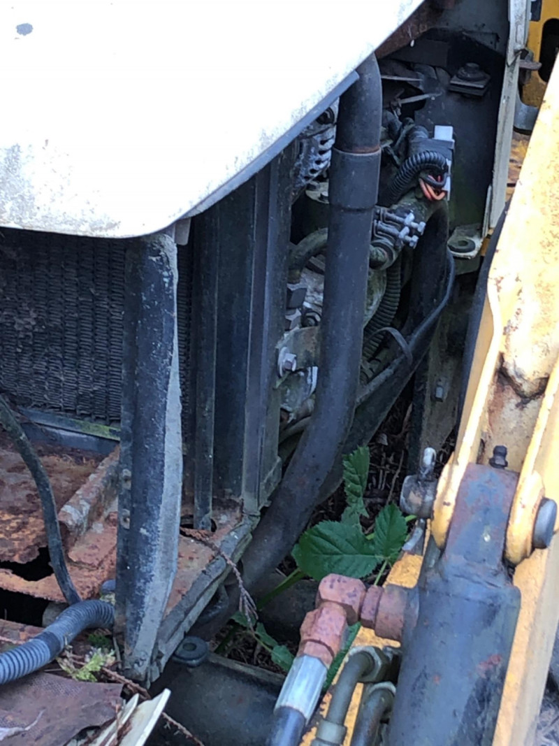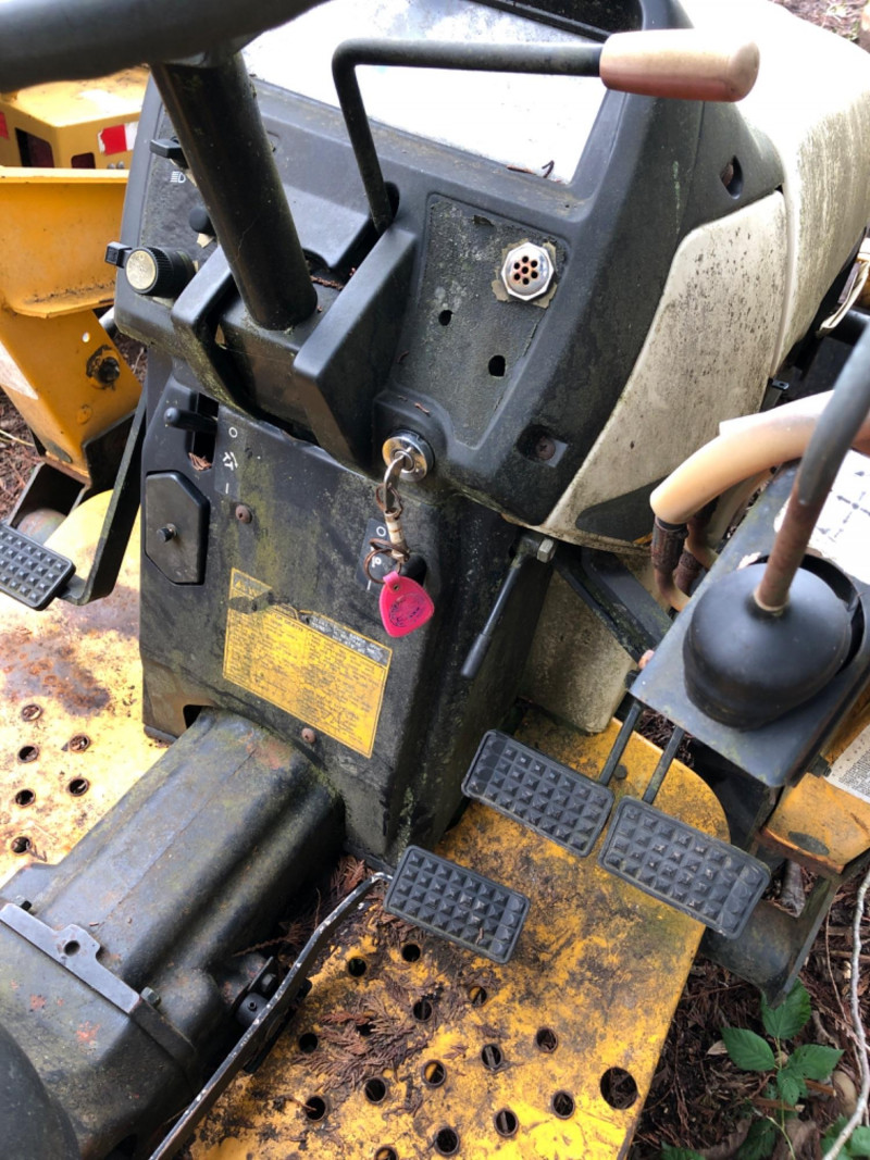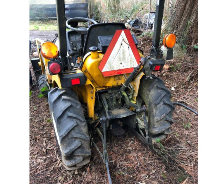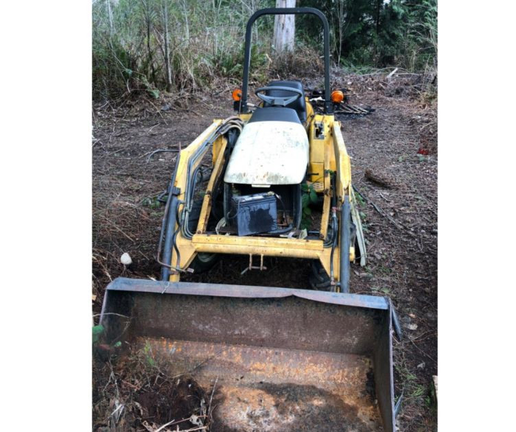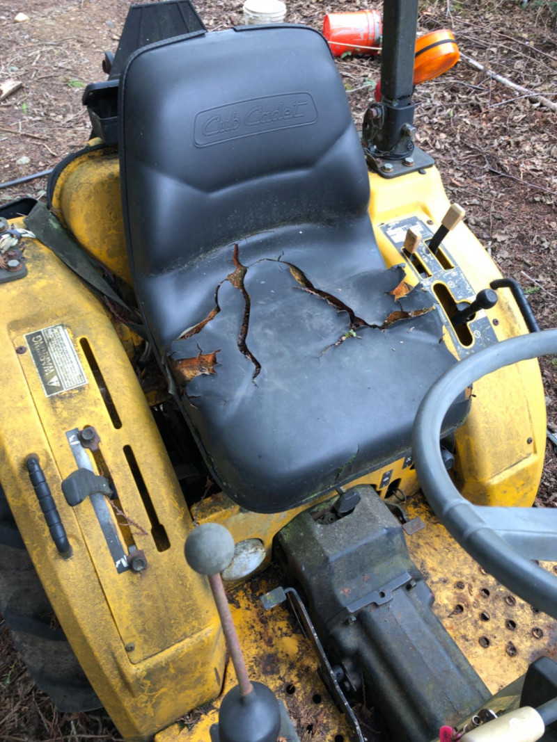 Cub Cadet 416 front‑end loader system mounted on a compact tractor, equipped with a 48" bucket and full hydraulic lift. Loader specifications include 2135 psi hydraulic pressure, 5.4 gpm pump capacity, and a maximum lift height of 84" at the pivot pin. Bucket capacity is 4.1 cu ft struck and 5.0 cu ft heaped, with a maximum dump clearance of 63" and 23" reach at maximum height. The loader weighs approximately 140 lbs and is designed for light earthmoving, landscaping, and material handling. Tractor shows typical outdoor use with wear consistent with age; see photos for bucket condition, hydraulics, and frame. Equipment has been exposed to weather conditions. Seat cover needs to be replaced, and machine needs a surface cleaning. Key included, dashboard lights come on, but unable to start the tractor.