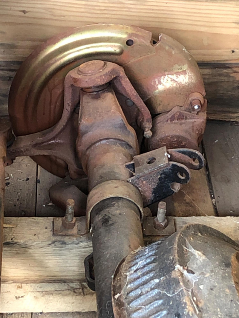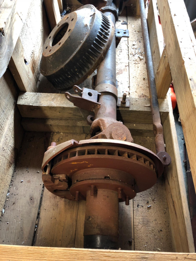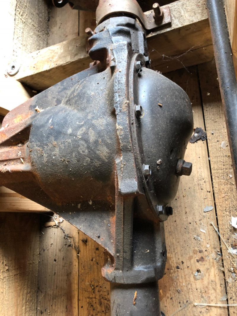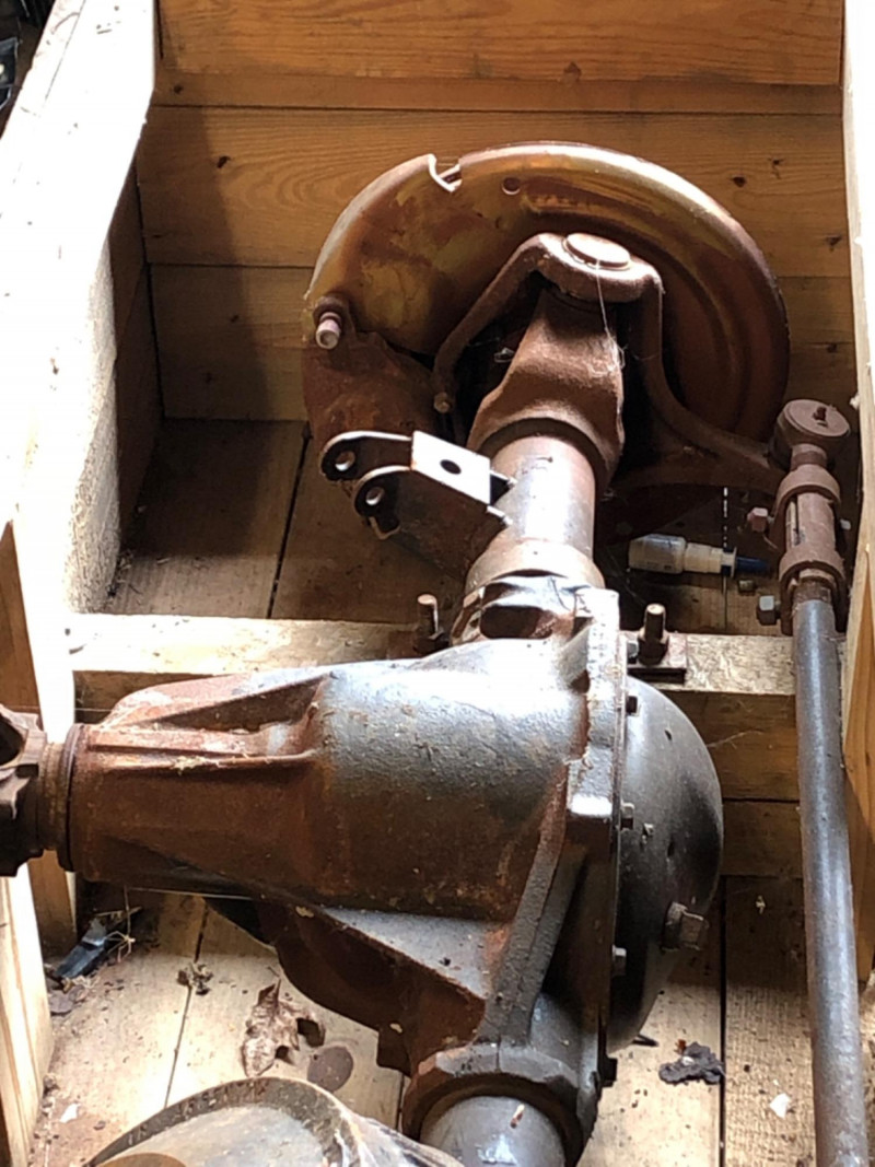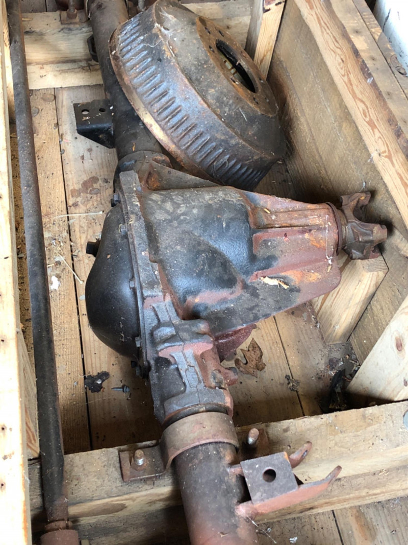 Automotive axle assembly with differential housing, axle shafts, and brake components, offered in as‑found condition. Suitable for parts, rebuild, or project use. Specific vehicle fitment is unknown; buyers should verify compatibility. See photos for configuration and included components.